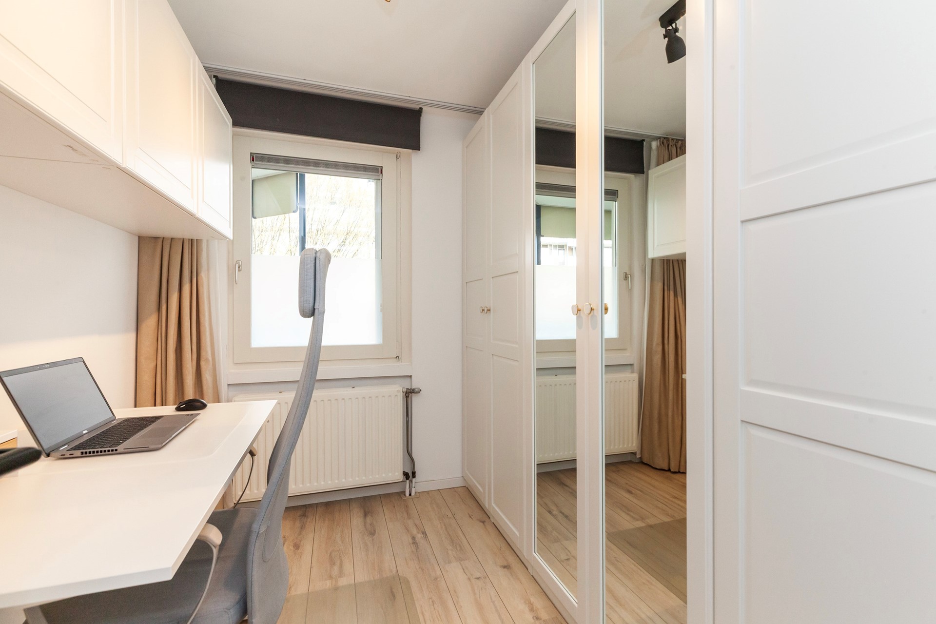 Tevens zijn er twee slaapkamers aanwezig. De master bedroom is ruim genoeg voor een groot bed en een grote kast. De tweede kamer is goed te gebruiken als thuiswerkkantoor of extra slaapkamer.