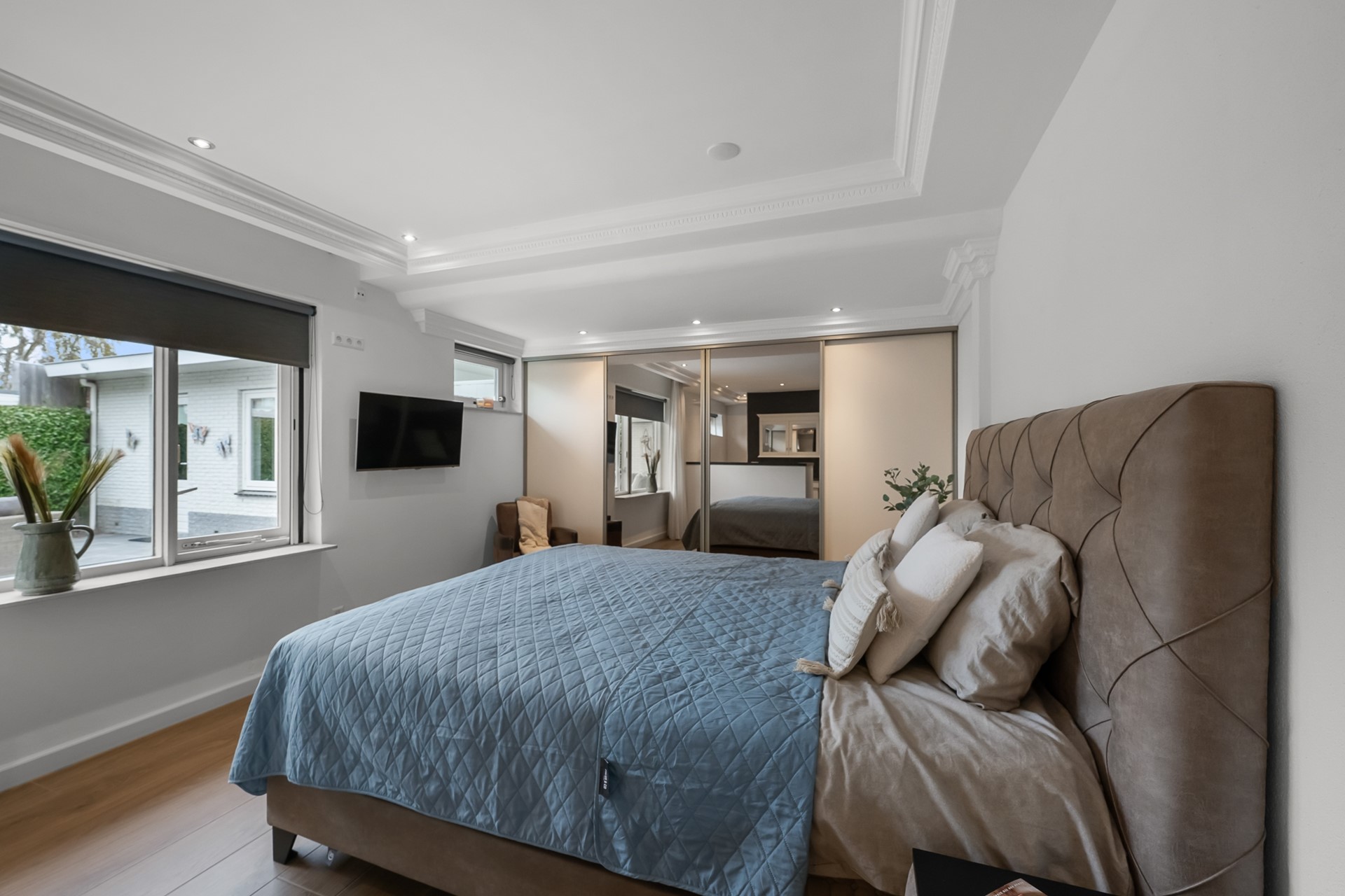 De woning beschikt over twee comfortabele slaapkamers op de begane grond. De grootste slaapkamer grenst direct aan de tuin en biedt een heerlijke rustige plek om te slapen. Deze slaapkamer heeft een directe verbinding met de badkamer. De compleet ingerichte badkamer is voorzien van een ruime inloopdouche, wastafelmeubel, ligbad en toilet en is uitgevoerd met moderne voorzieningen. Verder is er nog een tweede slaapkamer die vanuit de hal toegankelijk is.