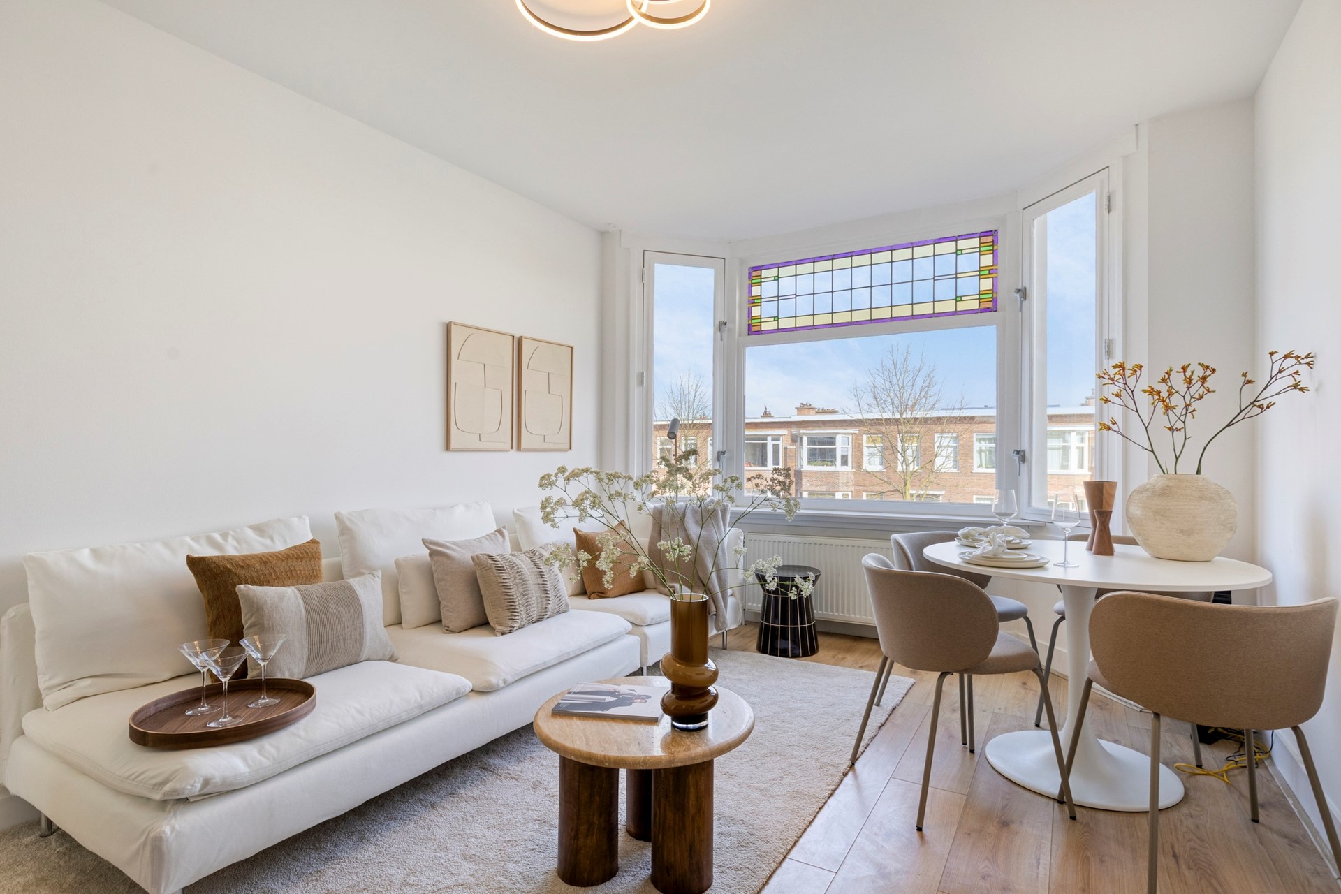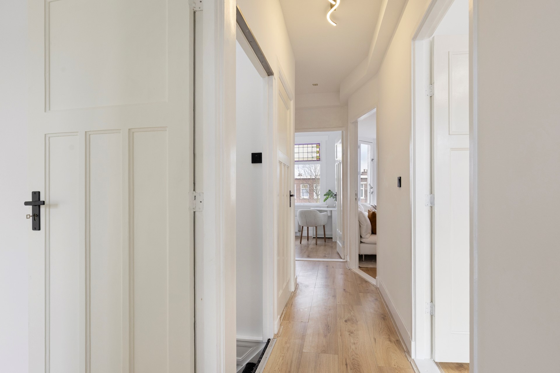 Dit ruime appartement met drie slaapkamers biedt een nette, verzorgde basis en is dan ook instapklaar. De woon- en eetkamer vormt het hart van de woning en biedt ruimte voor een eettafel. De authentieke glas-in-lood bovenramen zorgen daarbij voor extra sfeer en karakter.