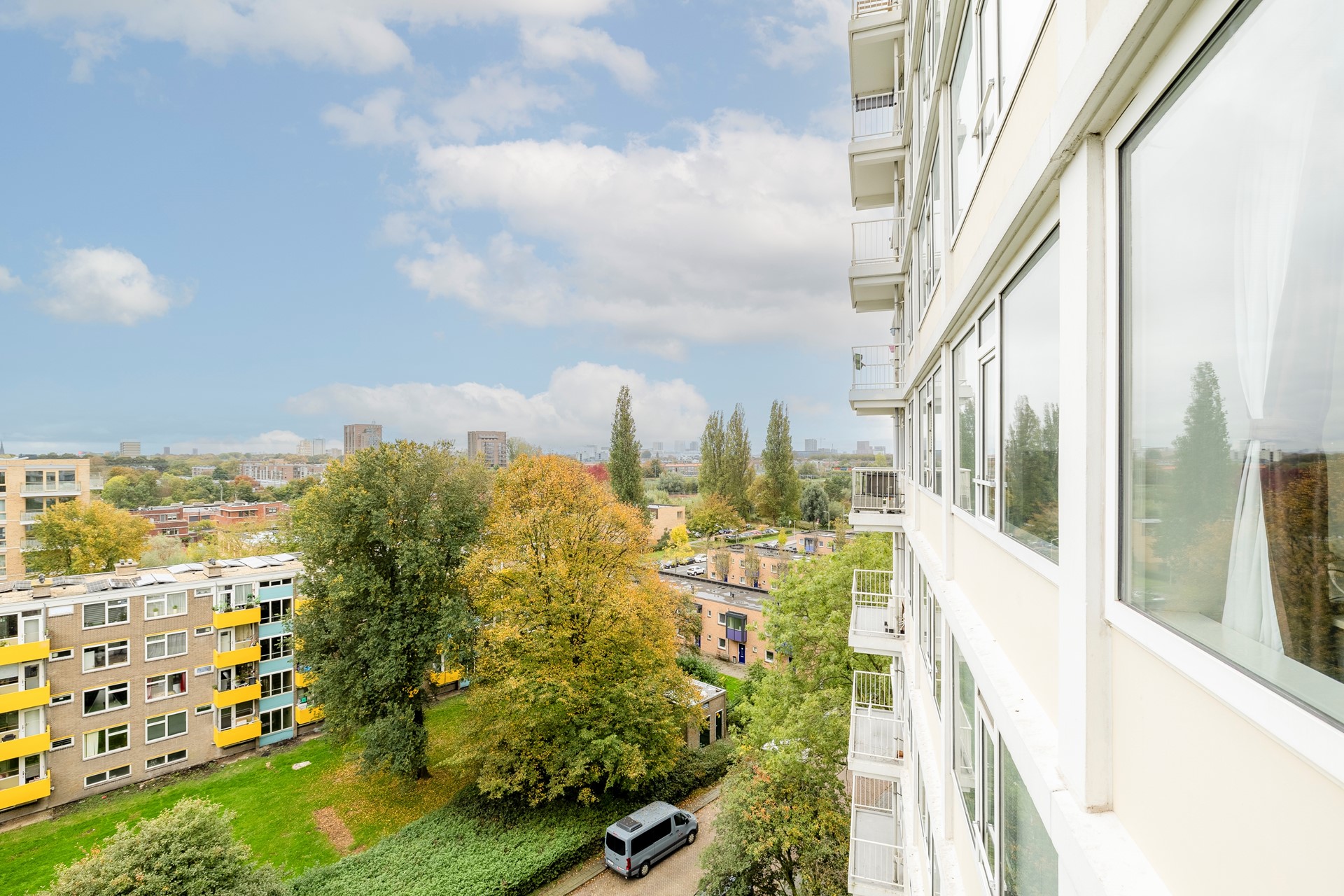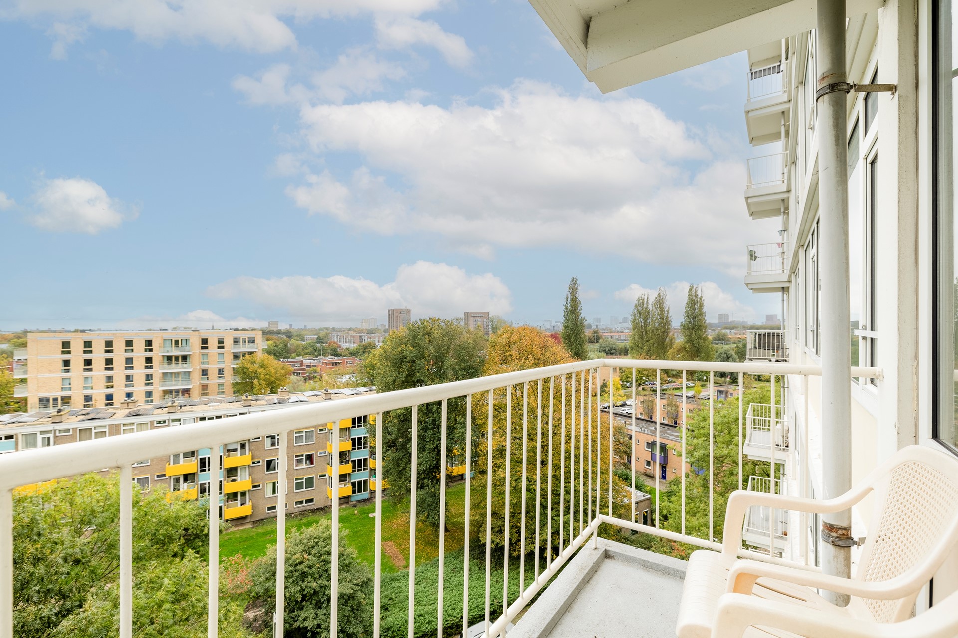In the green and child friendly neighborhood,Mariahoeve ,is this spacious, modernized 3-room apartment on the 7th floor with a conveniently located northeast-facing balcony is for sale. It's ideally located near major roads (A4, A12, and N44), public transport (train, tram, bus), and the shopping center (Het Kleine Loo). It's close to primary and secondary schools, including The British School, and various sports facilities. The apartment has an indoor storage unit of approximately 3.5 m² and (except for the kitchen) is fully equipped with uPVC window frames with double glazing. Parking is available on a large private lot. This apartment is ready to move into.