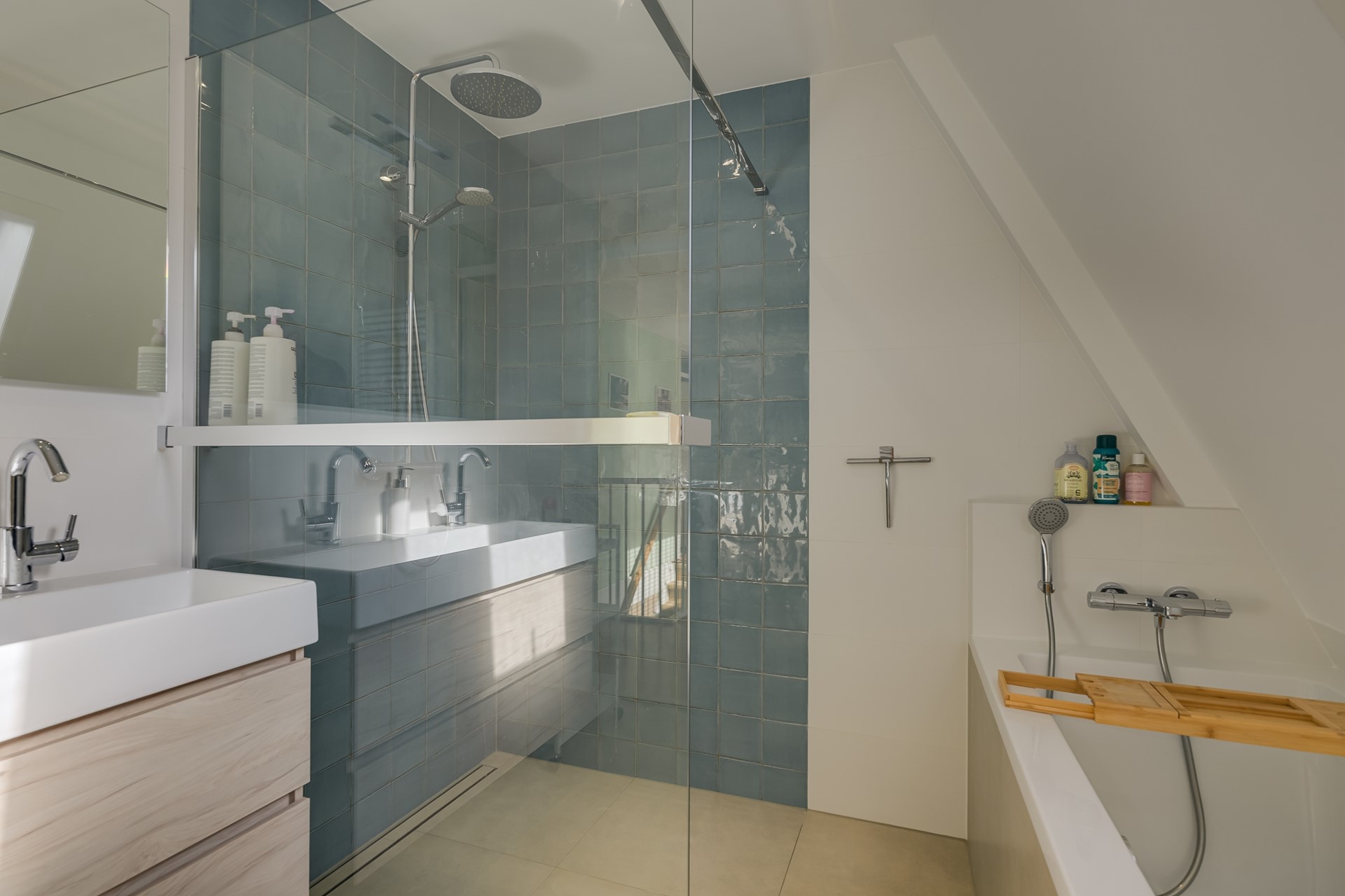 • Badkamer met ligbad, douche, wastafel en tweede toilet