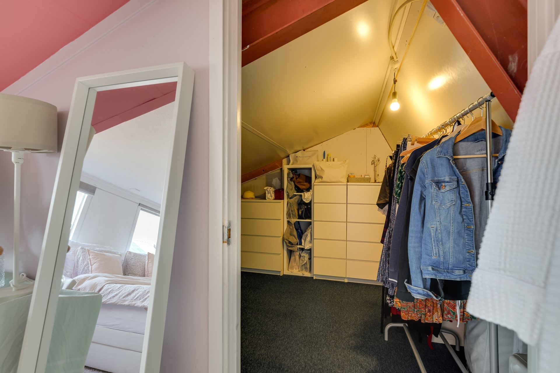 Grote vierde slaapkamer met bergruimte en extra kastgedeelte, ideaal als werk- of logeerkamer.
