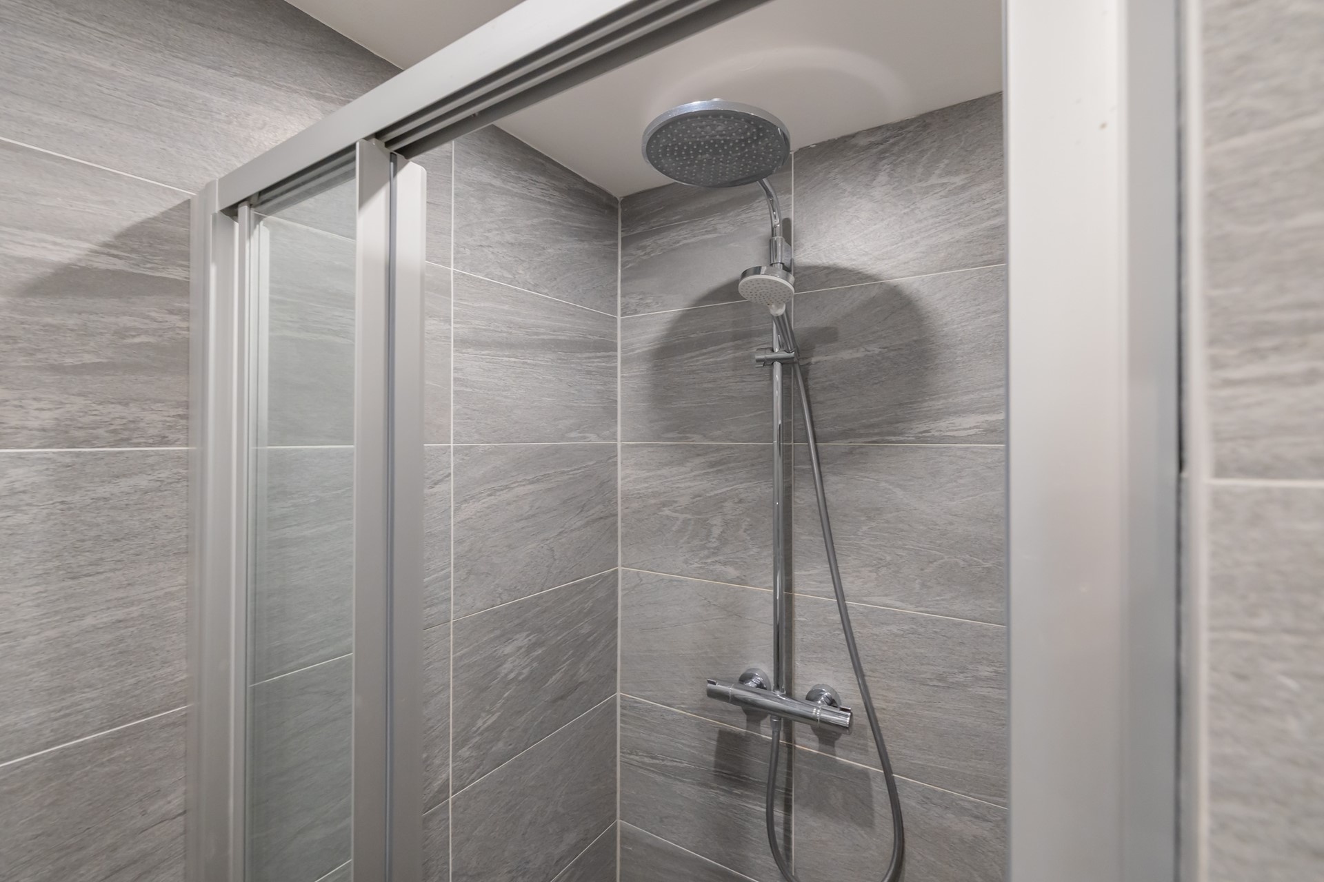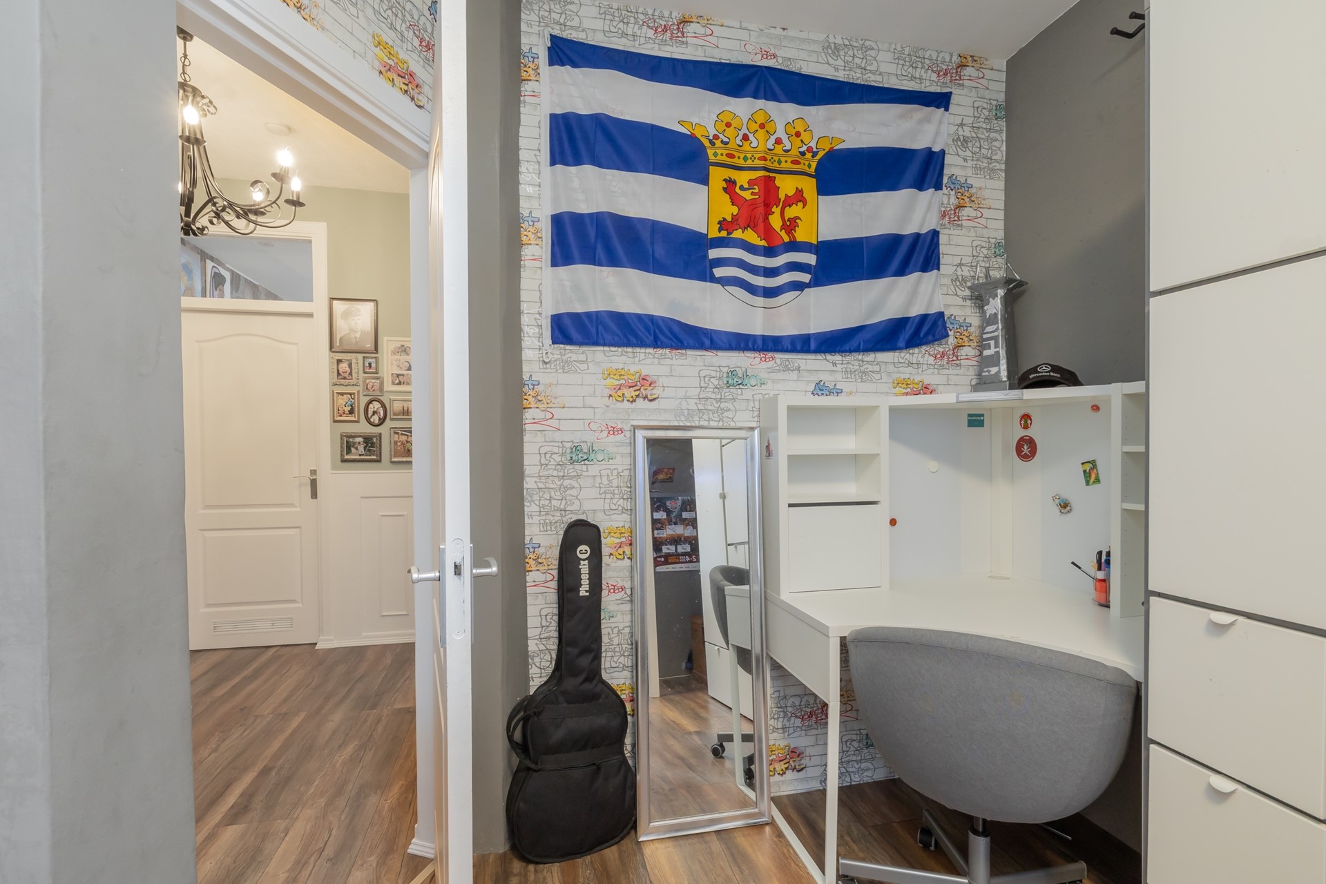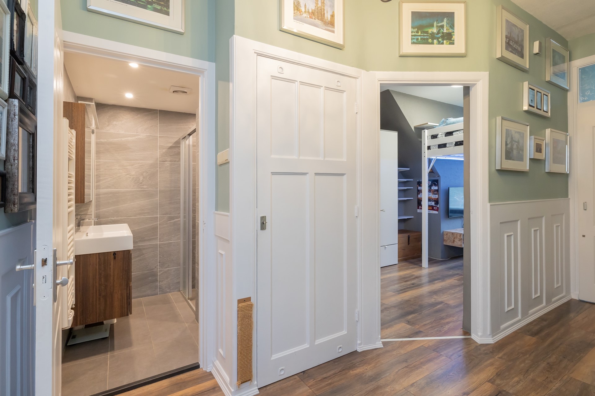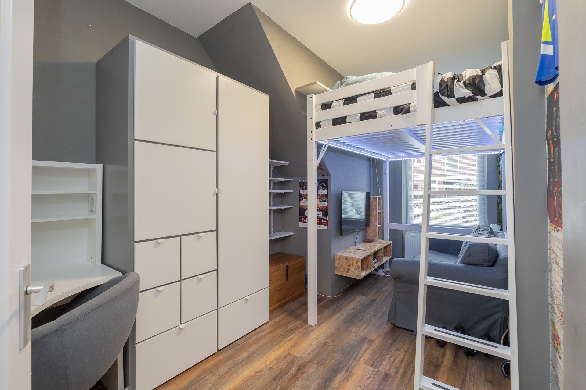 Via de voortuin stap je binnen in het tochtportaal, gevolgd door een hal die toegang biedt tot de vertrekken. Aan de voorzijde bevindt zich een slaapkamer met veel lichtinval, daarnaast een tweede slaapkamer die perfect is als kinderkamer of werkplek. De moderne badkamer (vernieuwd in 2023) is compact maar compleet, voorzien van een inloopdouche, wastafelmeubel, toilet en designradiator.