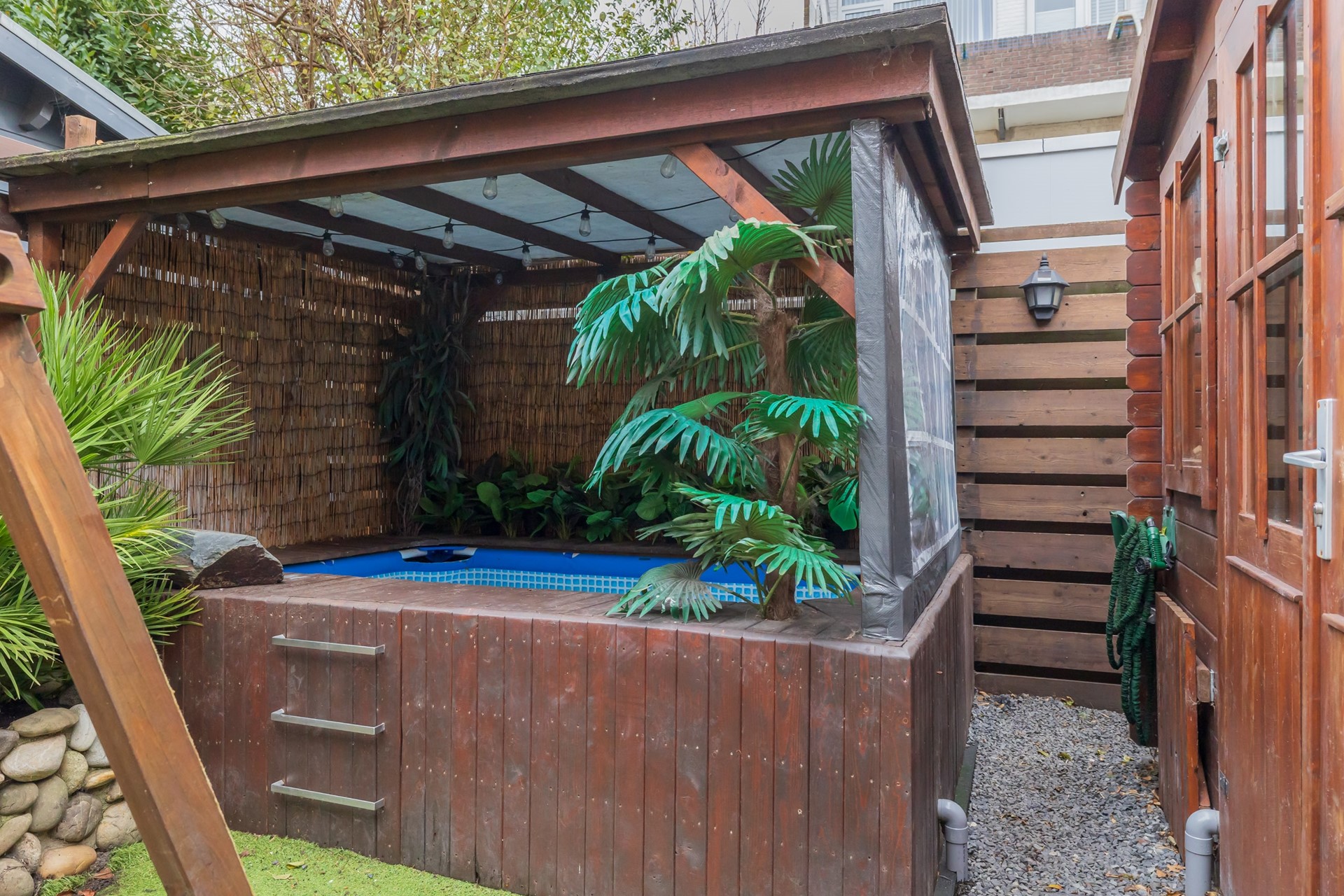 • Achtertuin met blokhut, overkapping en verwarmd zwembad
