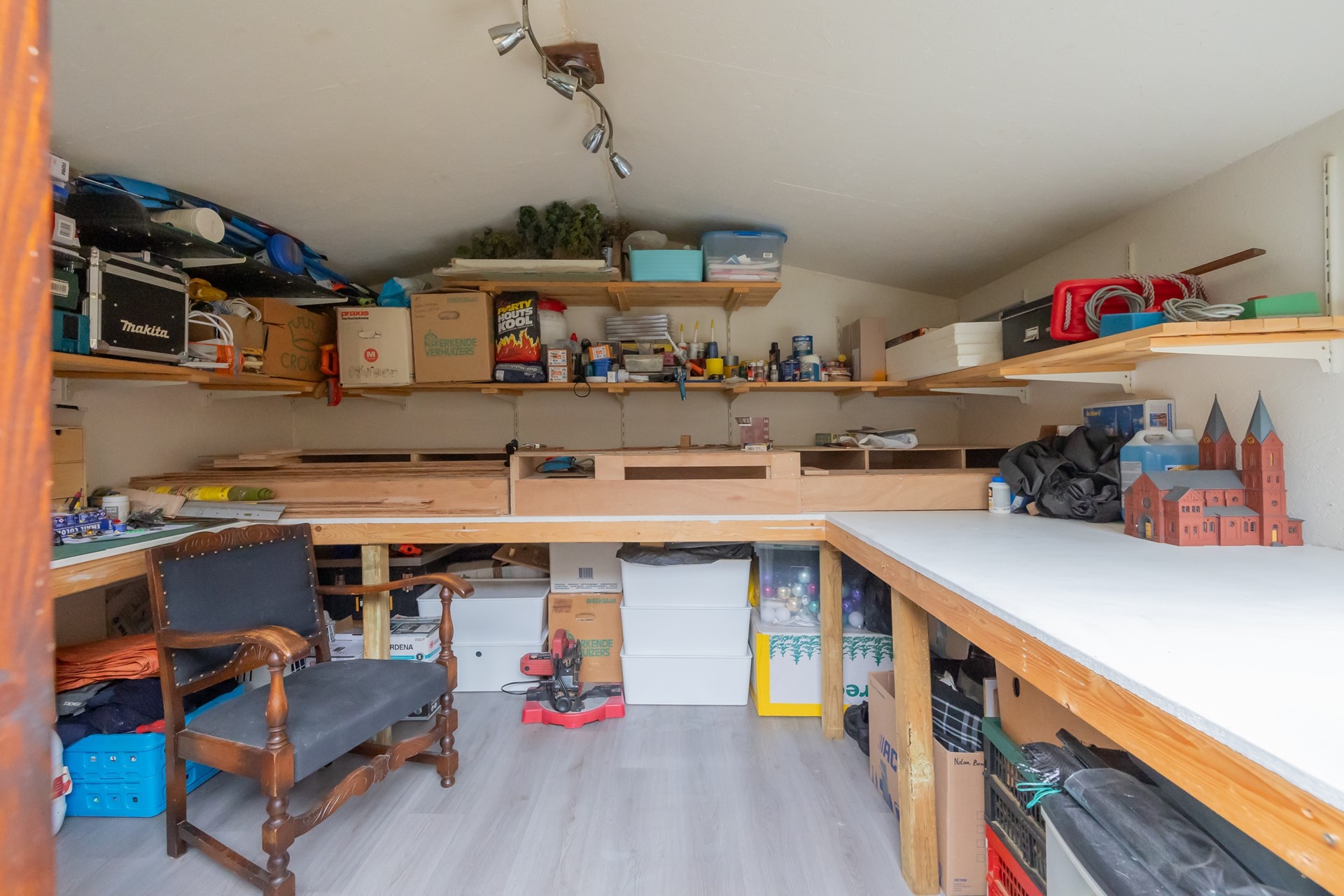 De achtertuin ligt op het noordoosten en heeft tot het einde van de middag zon. Hier vind je een royale blokhut die dient als schuur, een sfeervolle overkapping met loungehoek én een klein zwembad dat wordt verwarmd via een houthaard.