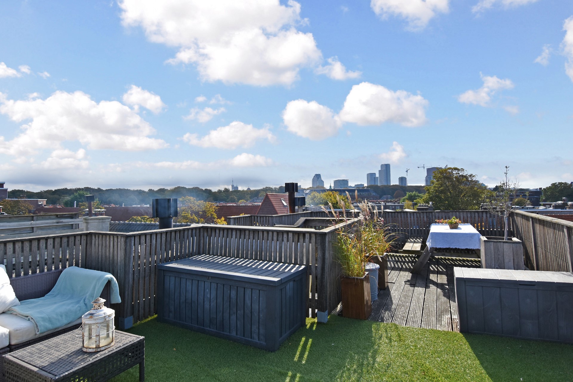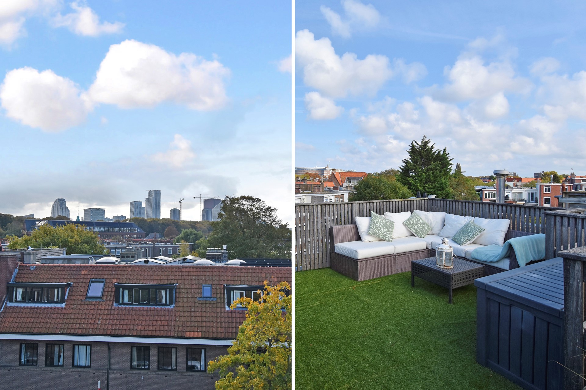 Via een vaste trap op de overloop betreed je het verrassend grote dakterras (36,9 m2)! Een fijne royale buitenruimte met uitzicht op de skyline van Den Haag. Hier kan je heerlijk vertoeven! De omheining maakt het ook een veilige plek voor kinderen. De toegang tot het dakterras is middels een makkelijk te openen lichtkoepel, die tevens zorgt voor een zee aan natuurlijk daglicht.