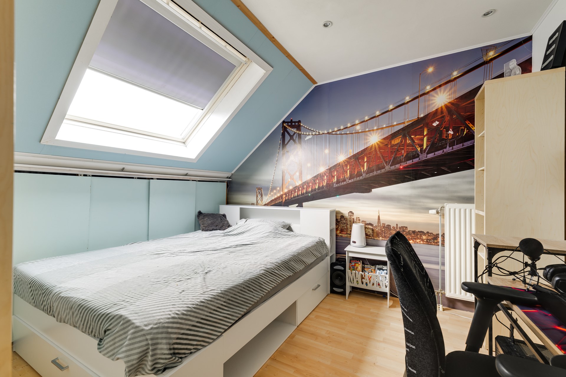 De zolderverdieping biedt 2 kamers met dakraam, perfect als slaapkamer, werkplek of hobbyruimte. Daarnaast is hier ruimte voor de wasmachine en extra opslag.