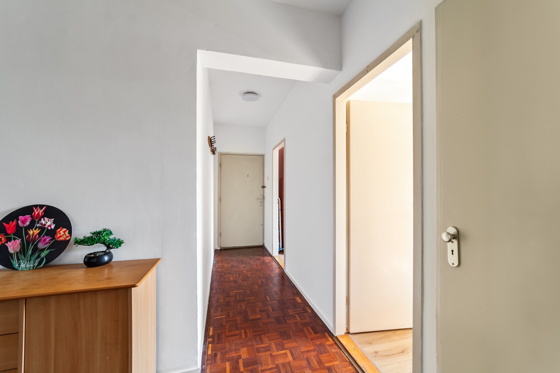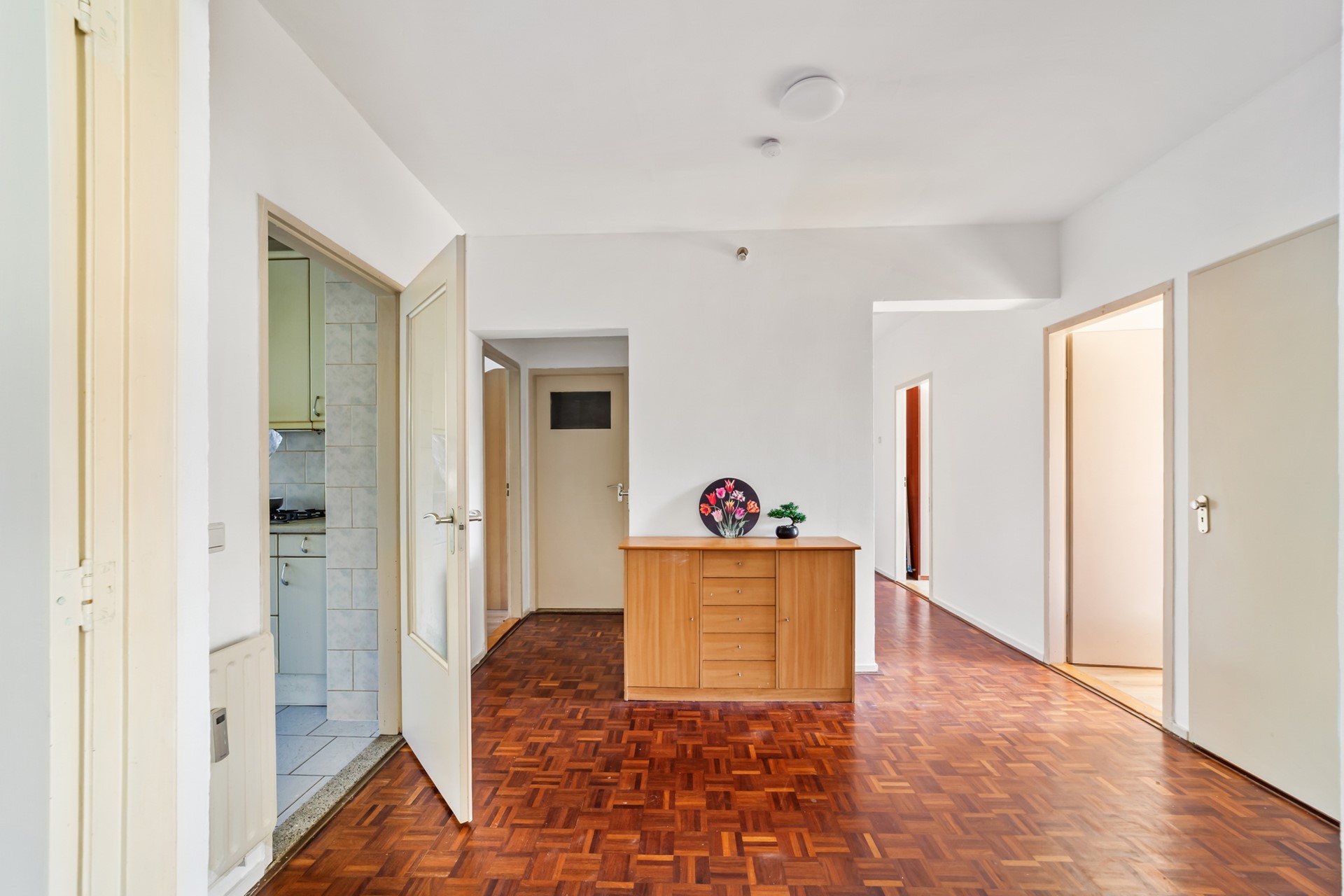 Entree woning. Ruime hal met toegang tot alle vertrekken in het huis.