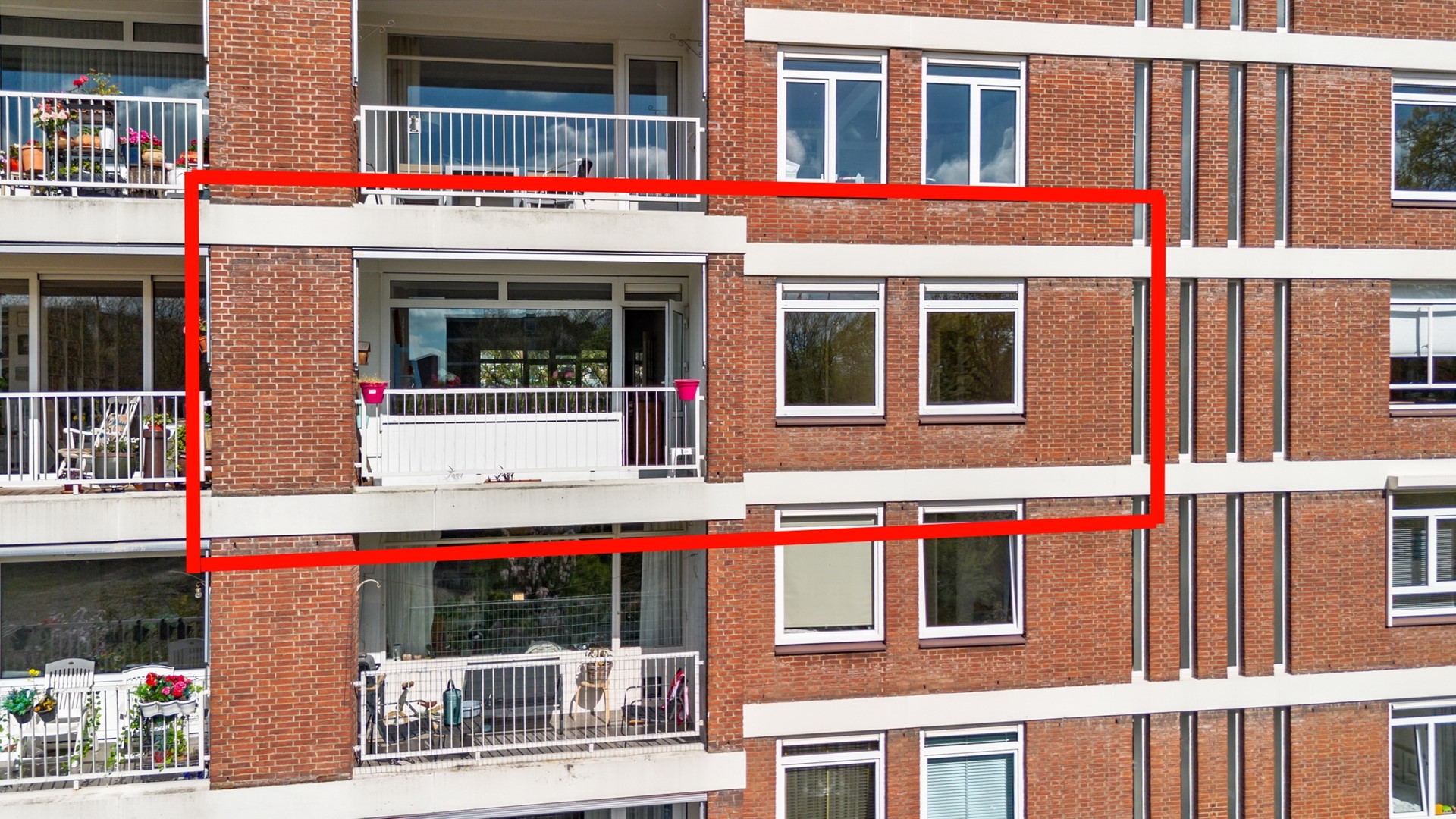Het appartement is voorzien van royale buitenruimtes ( 3 balkons ) en een eigen berging.