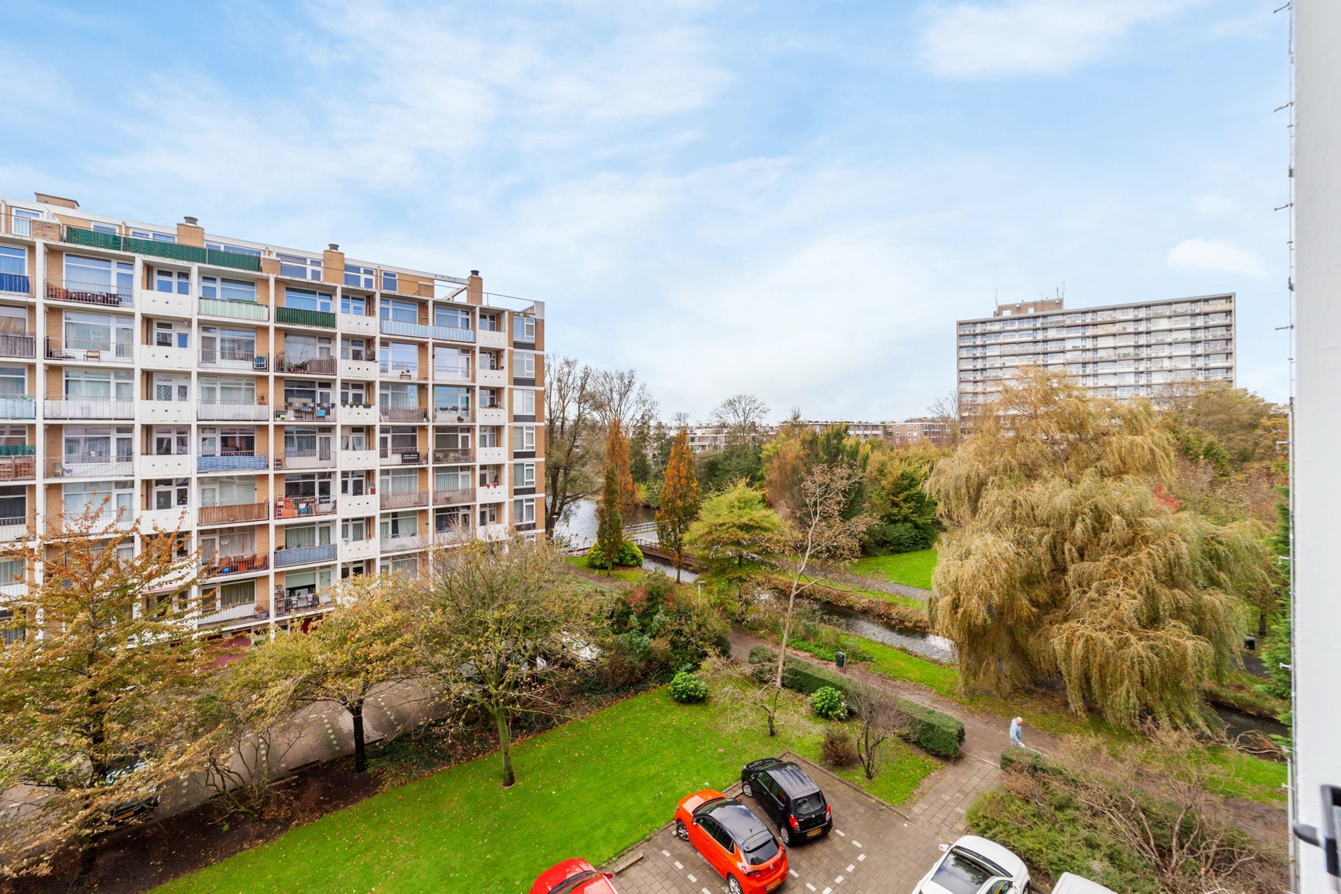 Verrassend ruim en heerlijk licht 3 ( voorheen 4 ) kamer appartement op de 4e verdieping met zonnig balkon, eigen berging in de onderbouw, een gezamenlijke fietsenstalling en een privé-parkeerterrein voor bewoners.