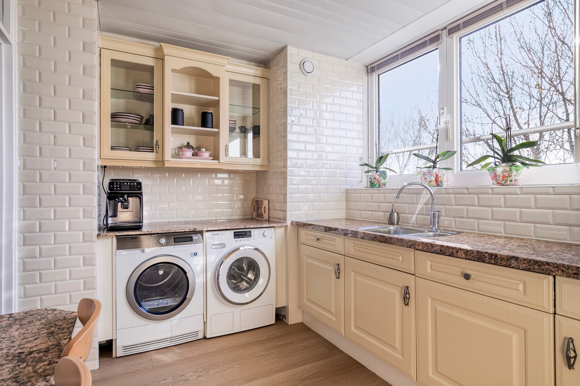 Deze woning beschikt over twee ruime slaapkamers, met de mogelijkheid om eenvoudig een derde slaapkamer te realiseren door een wand te plaatsen tussen de woonkamer en de aangrenzende zijkamer. Indien gewenst, kan zelfs een vierde slaapkamer worden gecreëerd door de slaapkamer aan de galerijzijde te splitsen en daar een extra kamer te maken. Deze grote slaapkamer bestond oorspronkelijk namelijk uit twee aparte slaapkamers. De keuken is goed onderhouden en voorzien van diverse inbouwapparatuur. De praktische indeling biedt niet alleen volop opbergruimte, maar ook een handige opstelplaats voor zowel wasmachine als droger. Daarnaast dragen de nette badkamer en het separate toilet, beide uitgevoerd in dezelfde verzorgde stijl, bij aan het comfortabele woongevoel dat deze woning biedt.