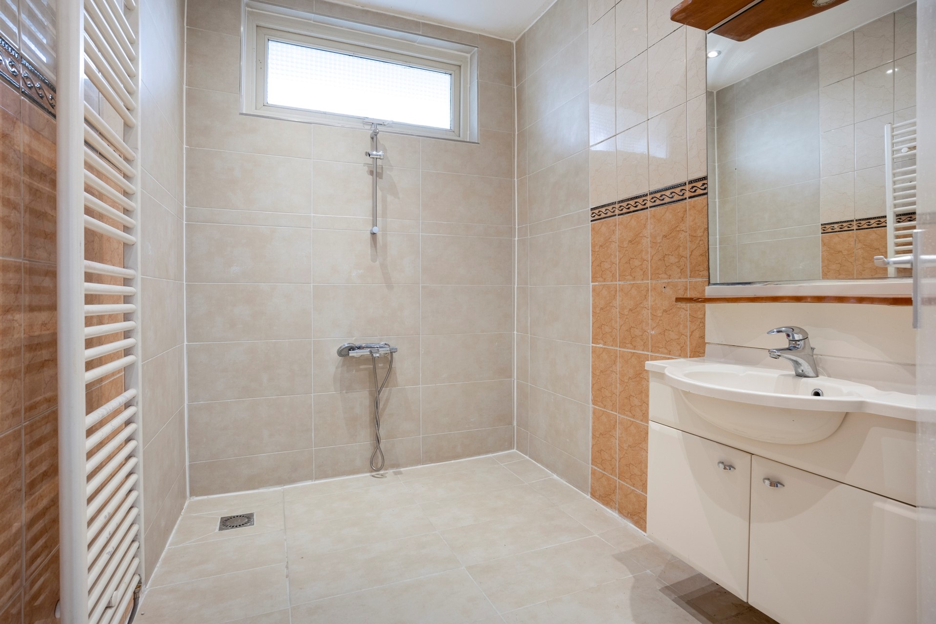 De aangrenzende badkamer is opvallend ruim opgezet en biedt volop potentie. Met de juiste invulling kan hier een stijlvolle en ontspannen wellnessruimte worden gecreëerd. Een appartement met ruimte, licht en mogelijkheden. Kortom: Perfect voor wie kansen ziet en er iets bijzonders van wil maken.