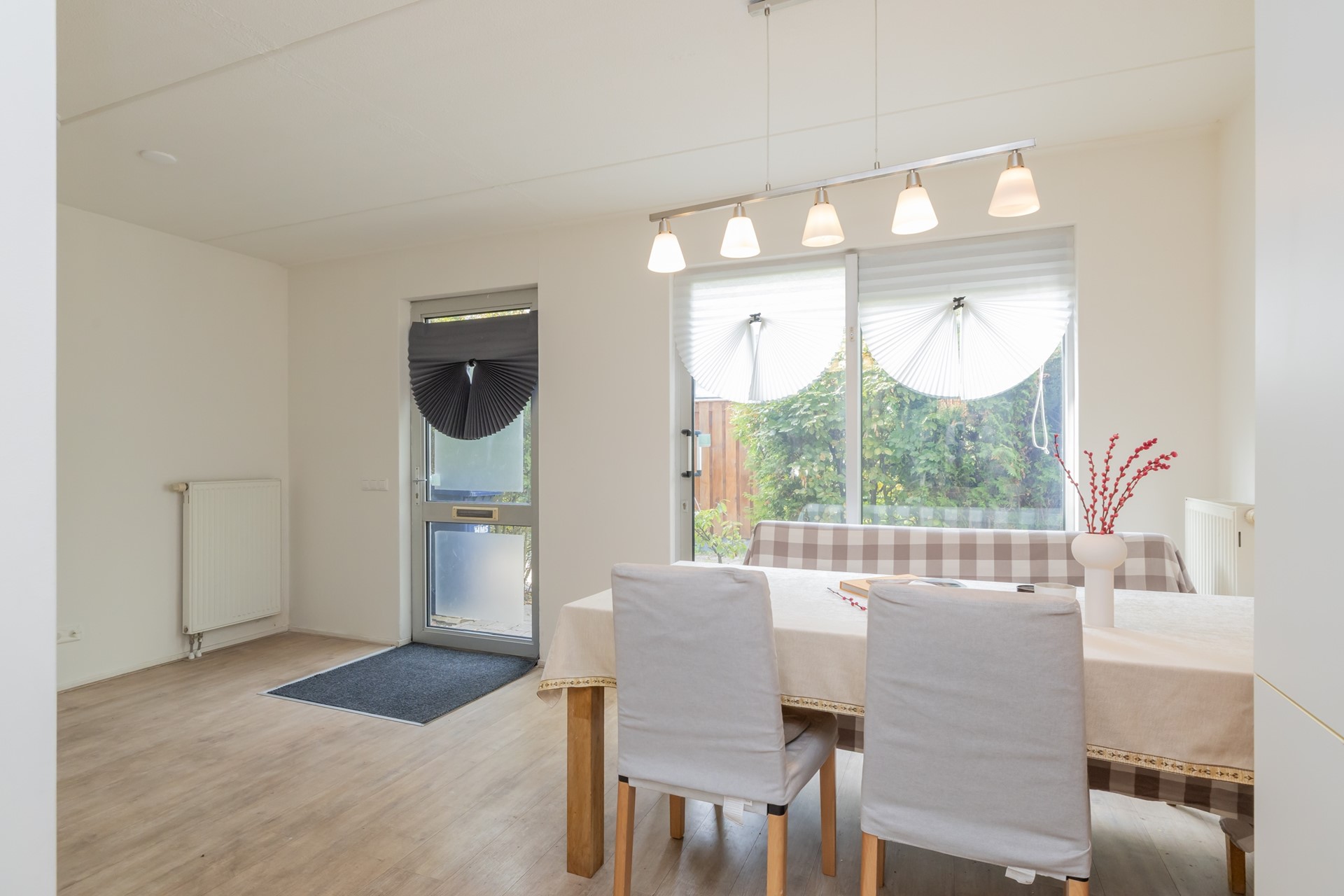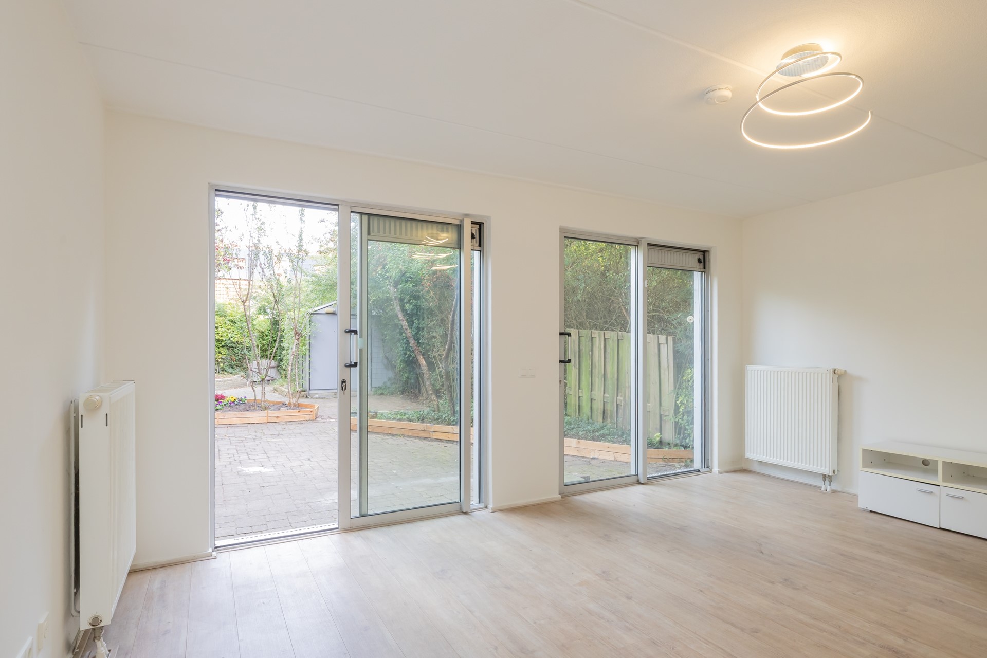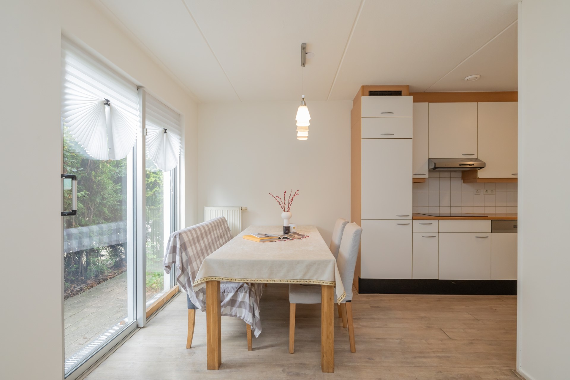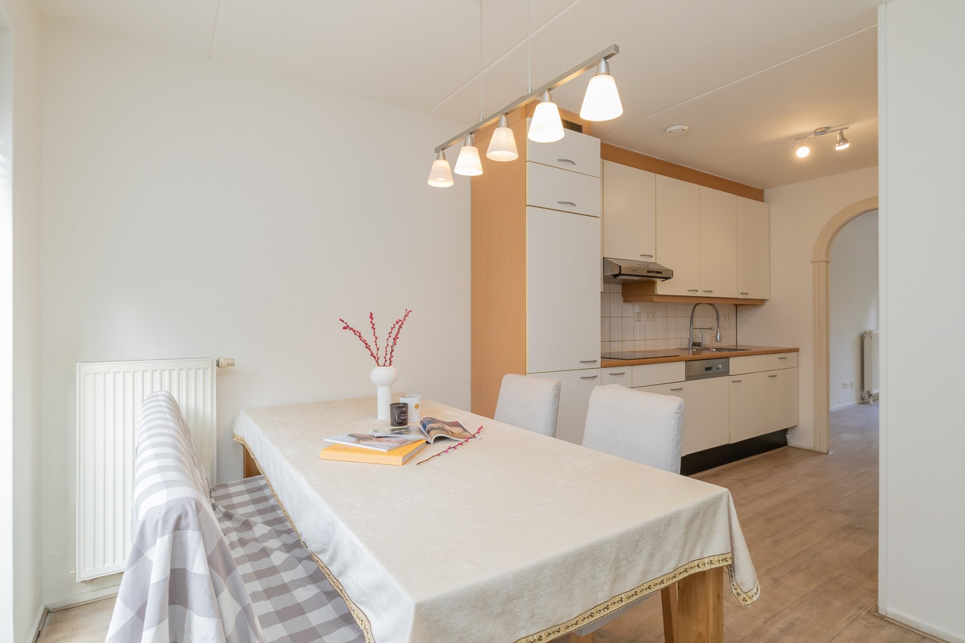 The home has a well-thought-out layout and immediately stands out for its generous dimensions. Through the bright entrance, you enter the modern kitchen equipped with all necessary appliances, including a ceramic cooktop, dishwasher and extractor hood. There is plenty of room for a large dining table, which is perfect for long dinners with friends and family. The garden-facing living room has sliding doors to the sunny backyard, offering an open, inviting atmosphere that beautifully connects indoor and outdoor living.