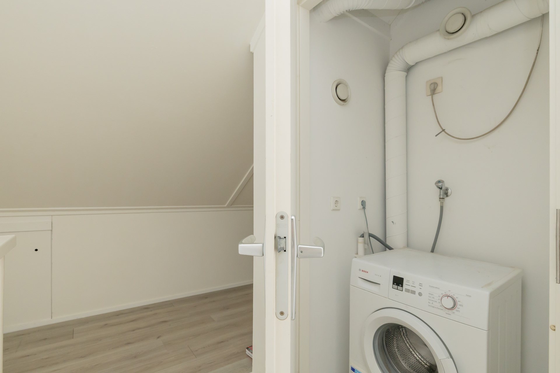 Voorzolder met bergruimte achter de knieschotten. Aparte wasruimte met opstelplaats voor wasmachine, droger en mv-unit. Grote slaapkamer/zolderkamer met dakraam en extra bergruimte.