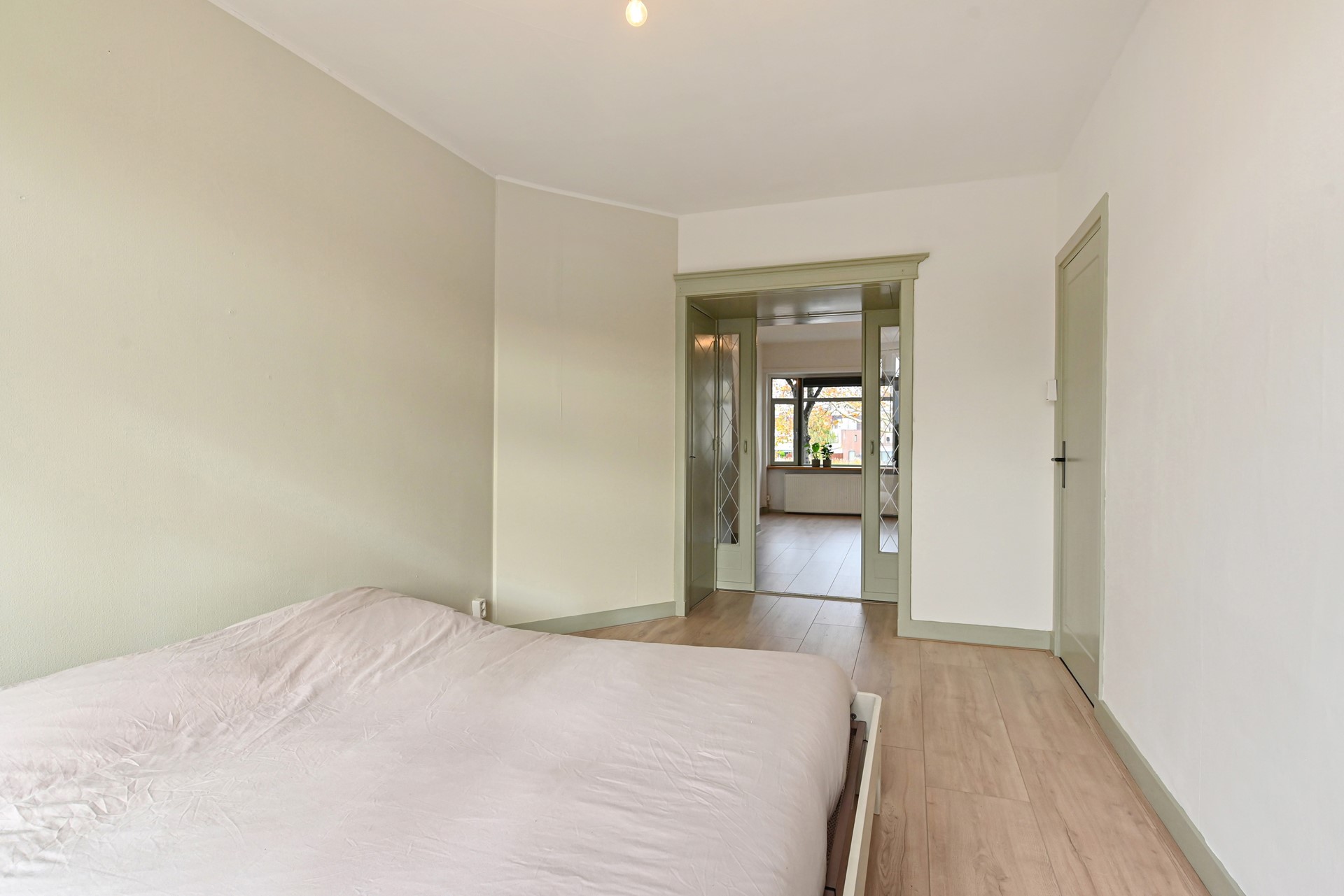 Het appartement heeft twee slaapkamers waarvan 1 van de slaapkamers royaal te noemen is (maar liefst 15 m2). Deze slaapkamer wordt middels authentieke glazen schuifdeuren van de woonkamer gescheiden. De slaapkamer heeft tevens een eigen deur naar de hal.