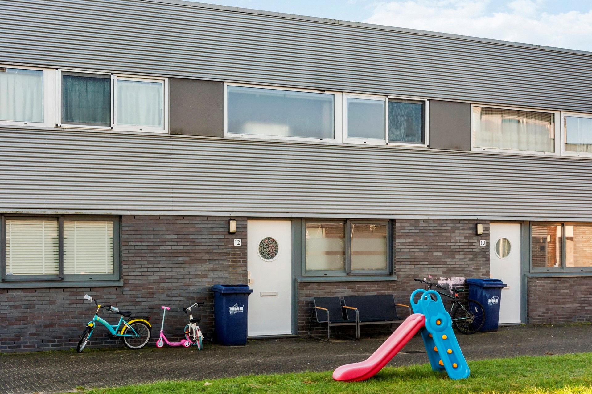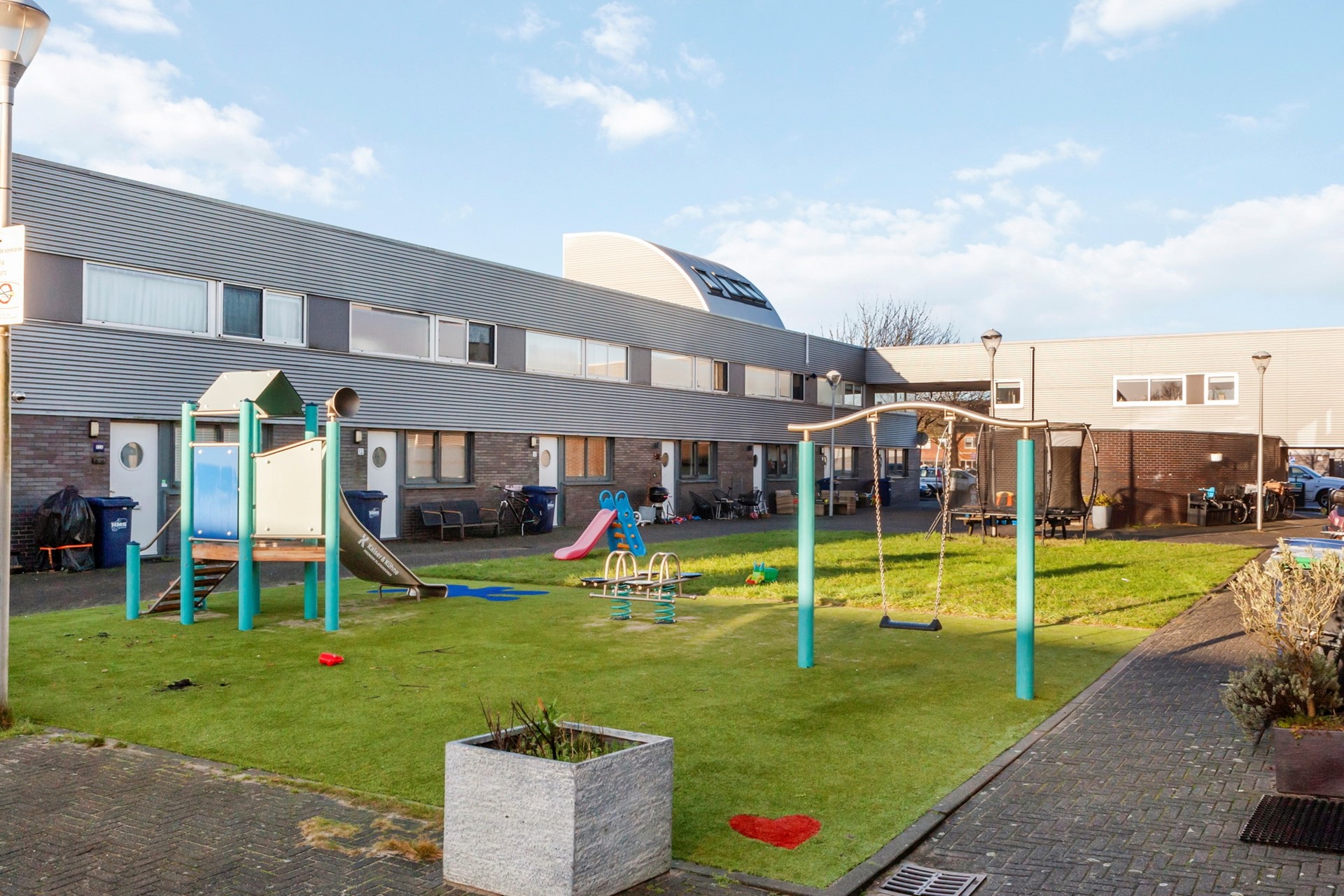 De voordeur van de woning bevindt zich in een gemoedelijk hofje met diverse speelgelegenheden voor de kleinere bewoners.