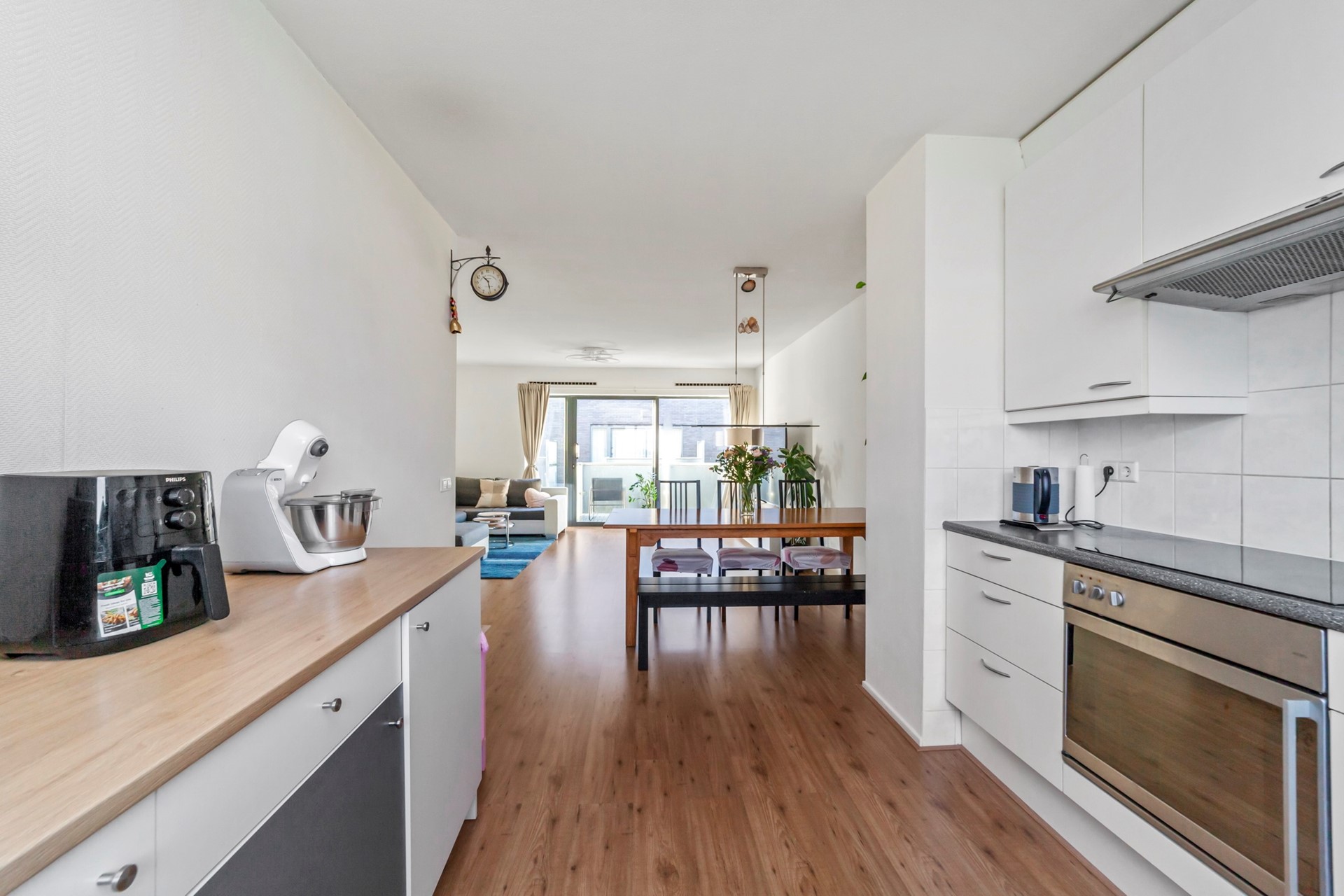 Aan de voorzijde van de woning treft u de ruime open keuken met de navolgende inbouwapparatuur: inductie kookplaat, afzuigkap, vaatwasmachine, combi-oven en losse koel- vriescombinatie.