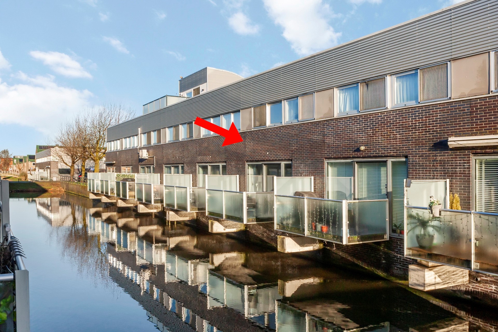 In een gezellig autovrij hofje, direct aan het water gelegen 4-kamer instapklare woning met berging en zonnig balkon op het zuidwesten.