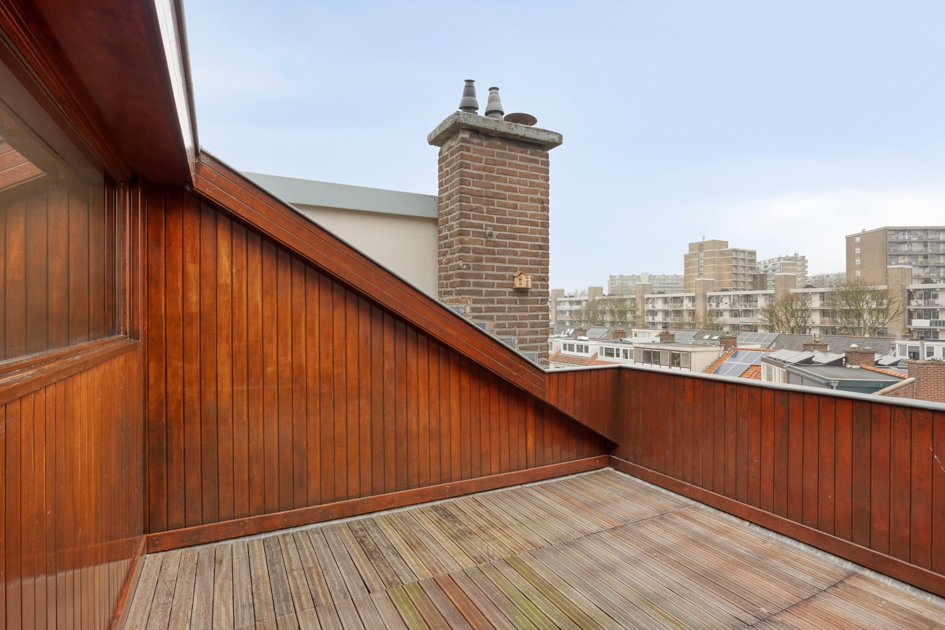 De woning beschikt over een zonnig balkon, maar de echte eye-catcher is zonder twijfel het royale dakterras van maar liefst 17,1 m². Een heerlijke plek waar u in de zomermaanden volop kunt genieten van de zon en het buitenleven. Vanaf het dakterras heeft u een vrij en weids uitzicht over de wijk Leyenburg, wat zorgt voor een prettig gevoel van ruimte en rust midden in de stad.