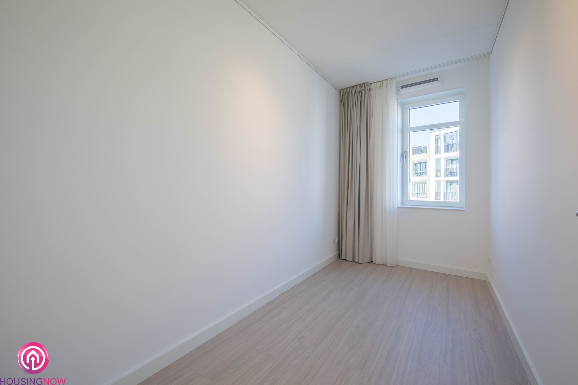 De woonkamer heeft lichte gordijnen en vitrage. De slaapkamers verduisteringsgordijnen en vitrage.