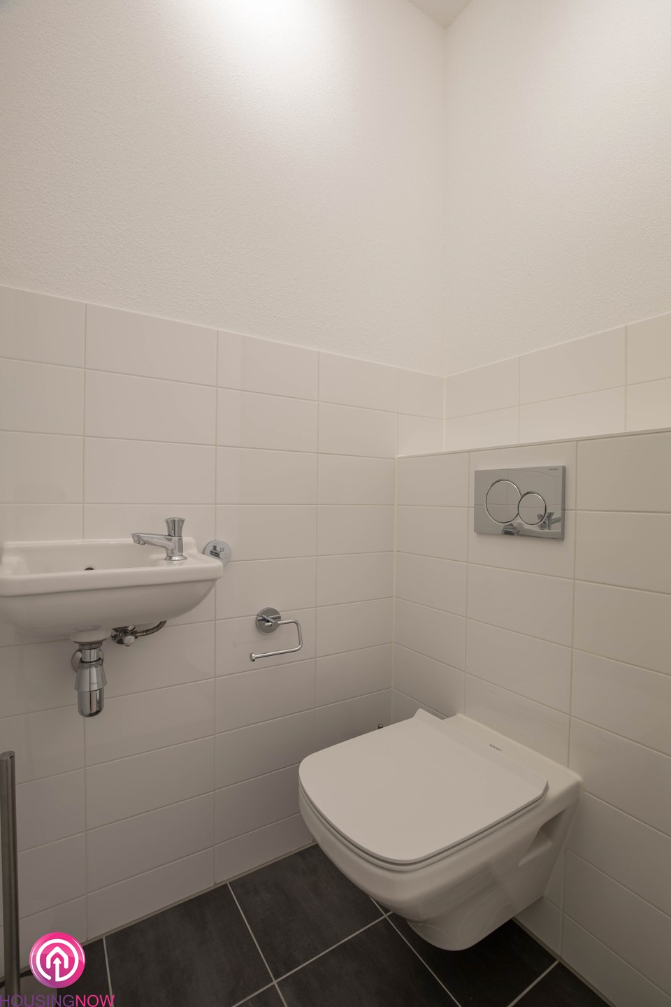 Ruime badkamer met inloopdouche en wastafelmeubel. Aparte toiletruimte met hangend toilet en fontein. Beide ruimten voorzien van de nodige accessoires.