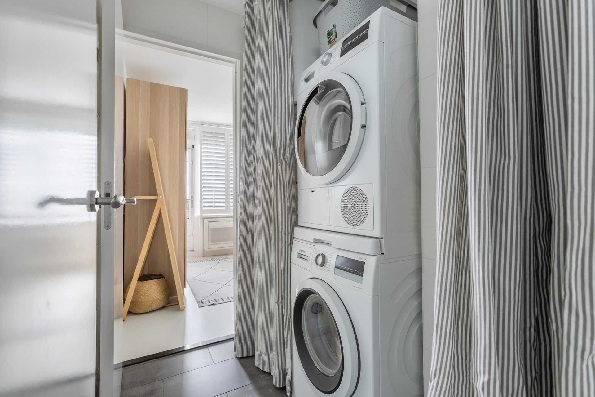 Aan de voorzijde twee ruime slaapkamers. Aan de achterzijde een royale slaapkamer met toegang tot het tweede balkon op het westen. Tussen de grote slaapkamer en de gang is een ruimte gelegen waar de grote elektrische warmwaterboiler zich bevindt, alsmede de aansluiting voor wasmachine/droger/vriezer. Moderne badkamer met inloopdouche/wastafelmeubel/tweede (zwevend) toilet.