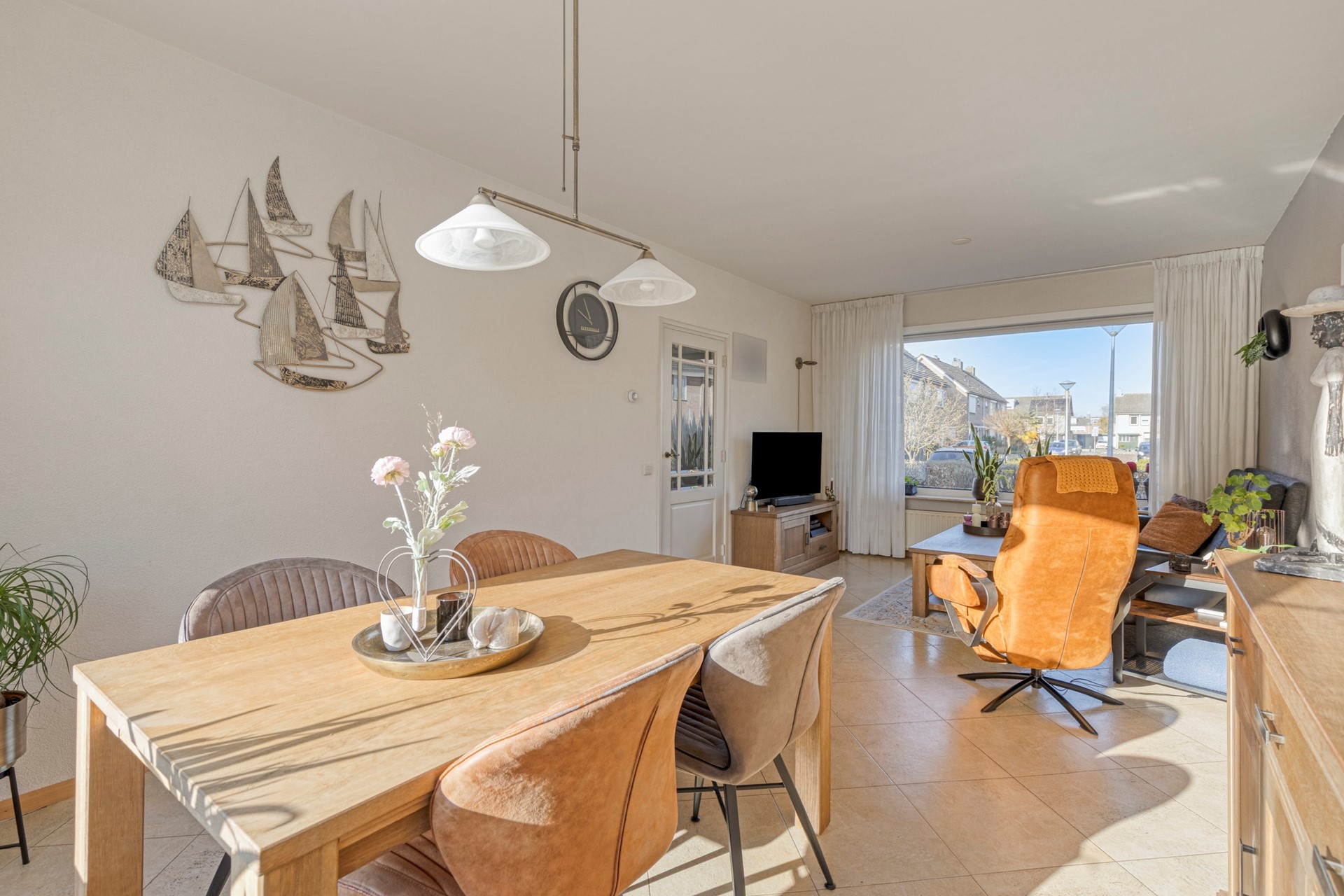 De doorzonwoonkamer is licht en ruim en biedt aan de voorzijde zicht op het rustige, groene straatbeeld. Aan de achterzijde kijk je uit op de eigen achtertuin, waardoor binnen en buiten mooi met elkaar in verbinding staan.