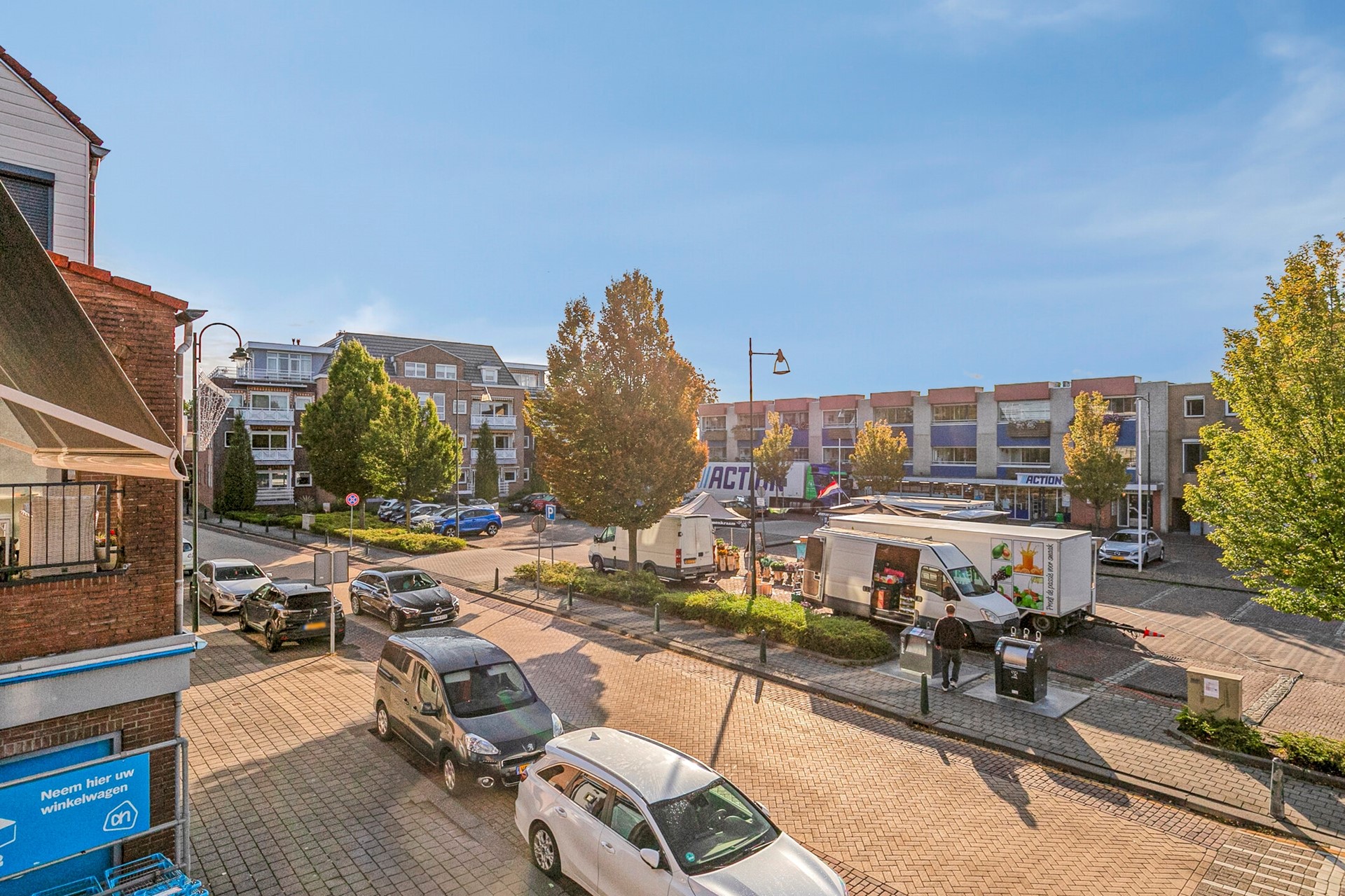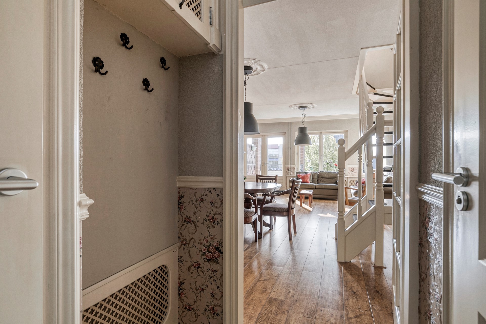 Vanuit de hal loop je door naar de ruime, lichte woonkamer, waar de laminaatvloer en lambrisering zorgen voor een warme, verzorgde uitstraling. Aan de voorzijde is een balkon met uitzicht op de levendige straat – een fijne plek voor je ochtendkoffie of om even buiten te zitten.