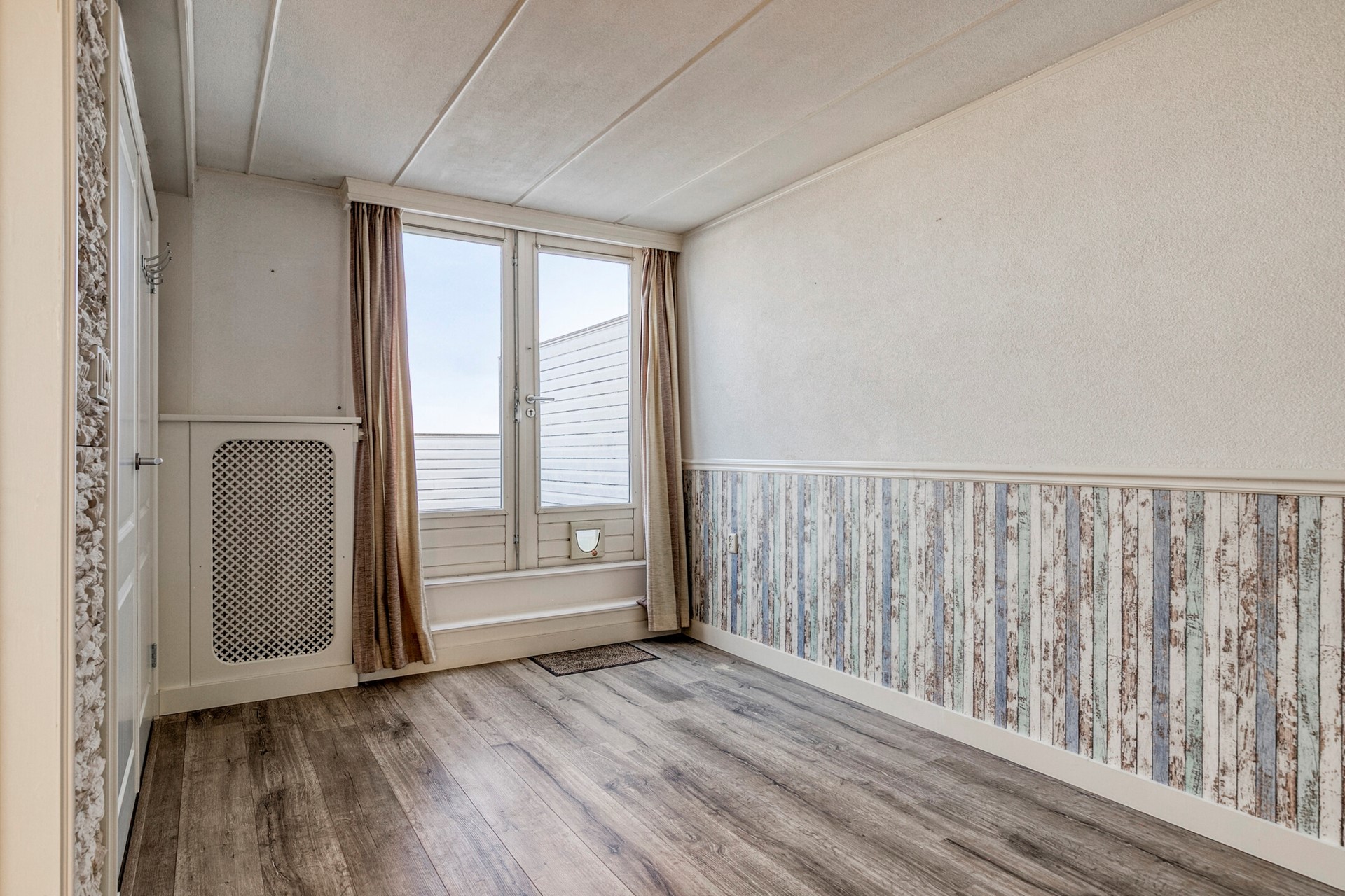 De slaapkamer aan de voorzijde van het appartement is circa 4,65m x 2,80m groot en beschikt over een aansluitpunt voor wasmachine en droger. Vanuit deze kamer leidt een vaste trap naar de bovenste (derde) verdieping van het appartement.