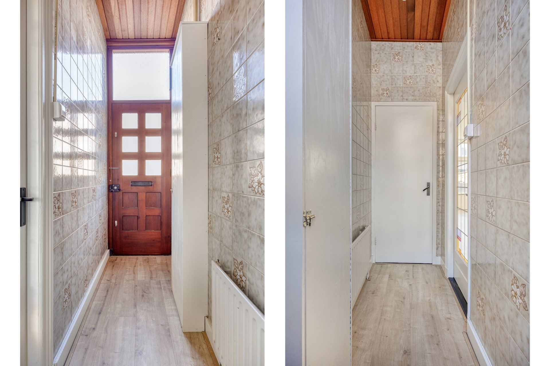 Via de keuken heb je toegang tot een hal met het toilet en de moderne badkamer. Deze is stijlvol afgewerkt en voorzien van inbouwspots, een regendouche en een wastafel met badmeubel. Vanuit de keuken loop je ook zo de achtertuin in, waar je een praktische aangebouwde berging vindt. Hier bevindt zich ook de cv-ketel uit 2020.