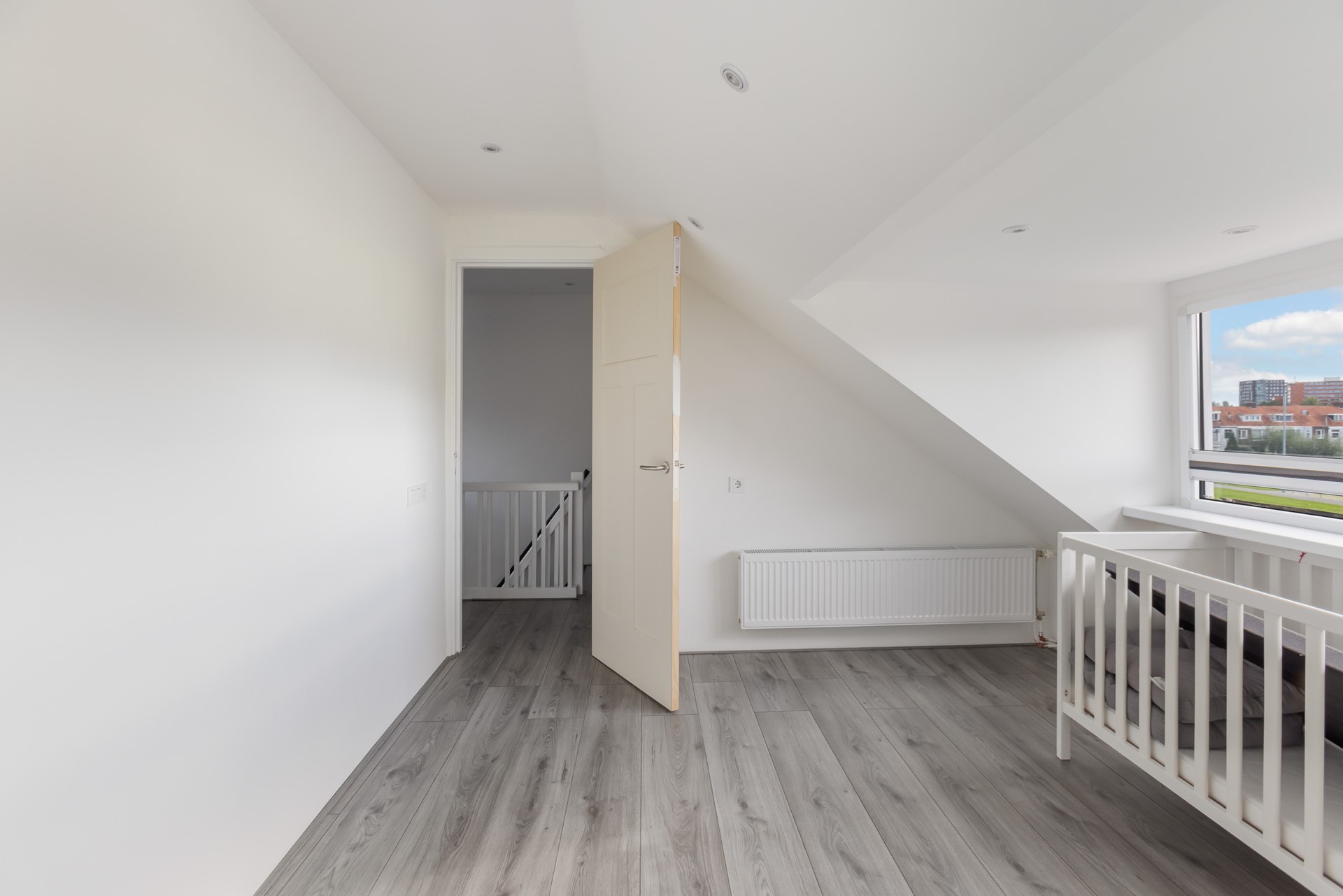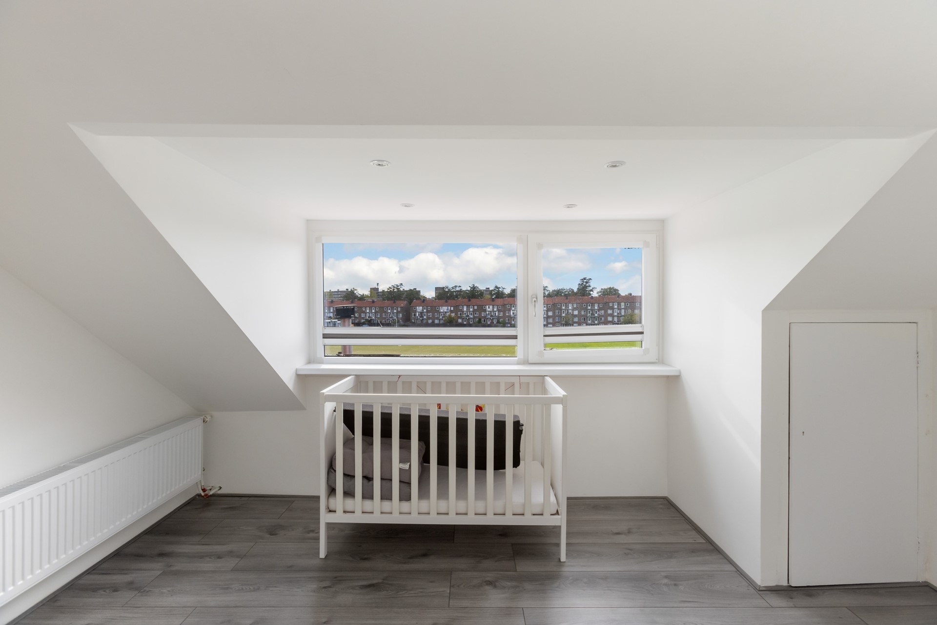 Ruime slaapkamer gelegen aan de voorzijde, voorzien van een inbouwkast. Dankzij de kunststof dakkapel met HR-glas en draaikiepraam is de kamer extra licht en praktisch in gebruik.