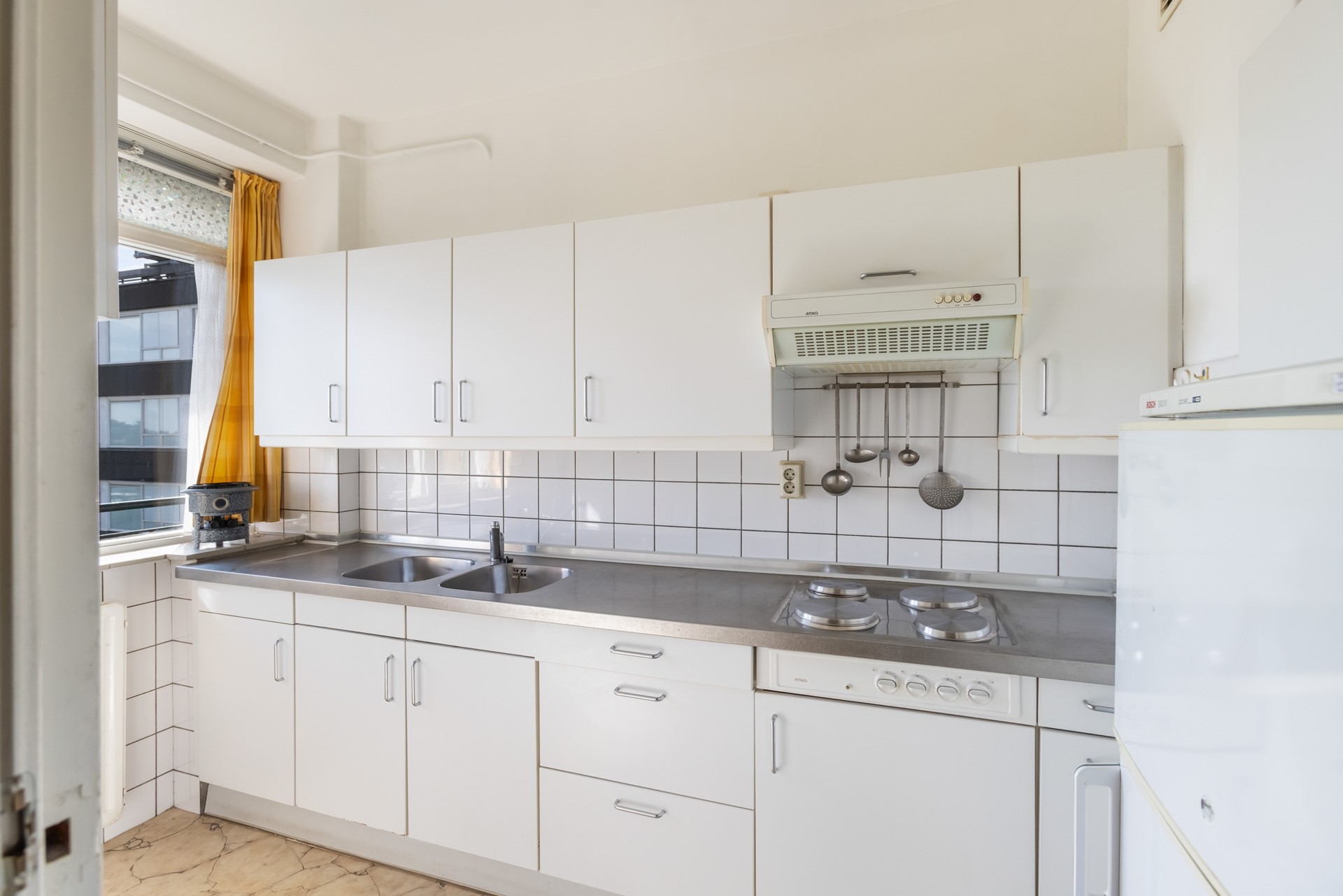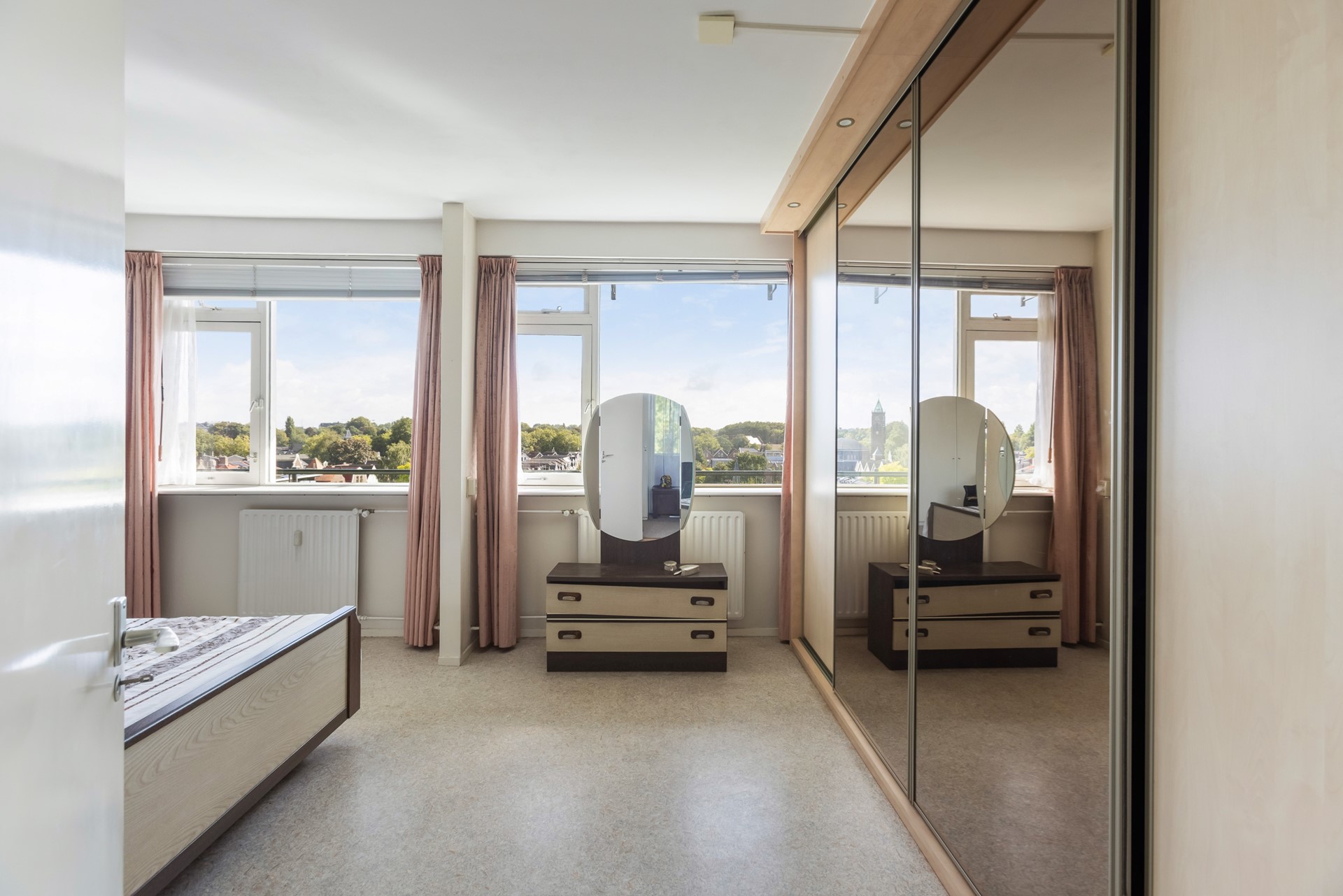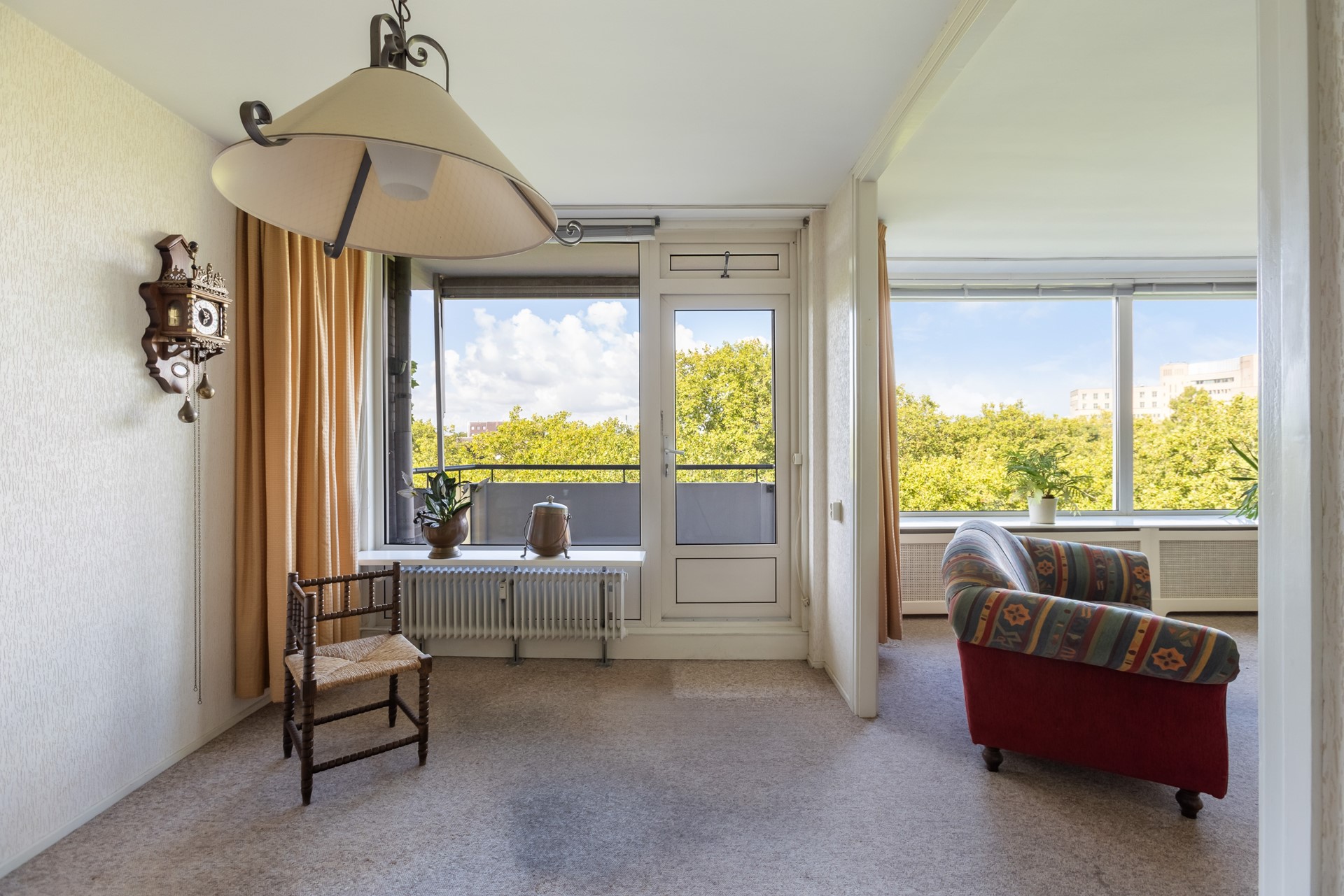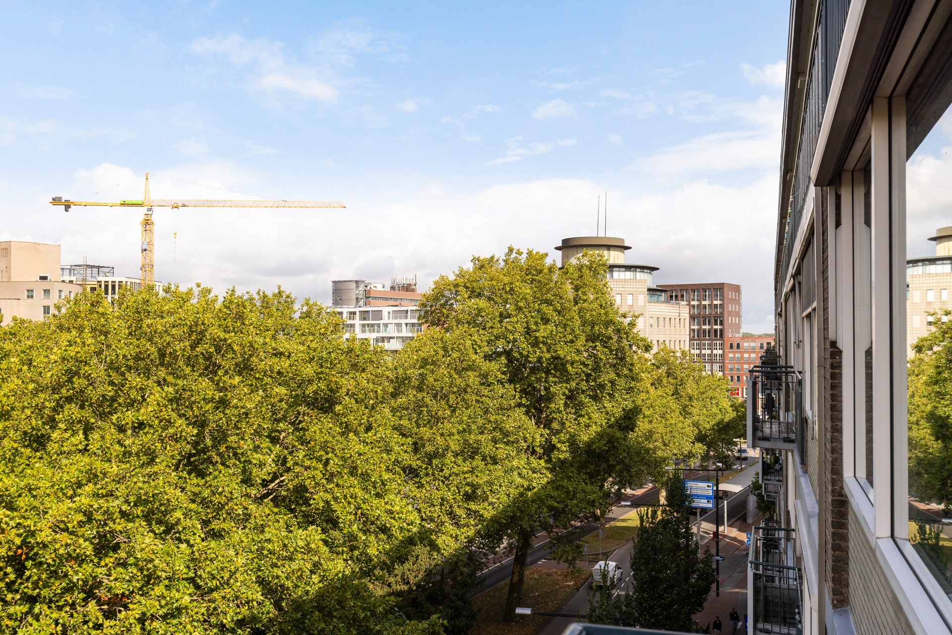 Voorheen was de woning ingedeeld als 4-kamerappartement, waardoor er eenvoudig extra slaapkamers te realiseren zijn. Dankzij de grote raampartijen zijn zowel de woon- als slaapkamer heerlijk licht. Vanuit 5de etage kijk u vanuit de woonkamer en het balkon uit op statige herenhuizen en een straat die in het voorjaar verandert in een lommerrijke laan. Het frisse bladerdek van de platanen geeft een gevoel van rust en ruimte – alsof u even helemaal buiten de stad bent.