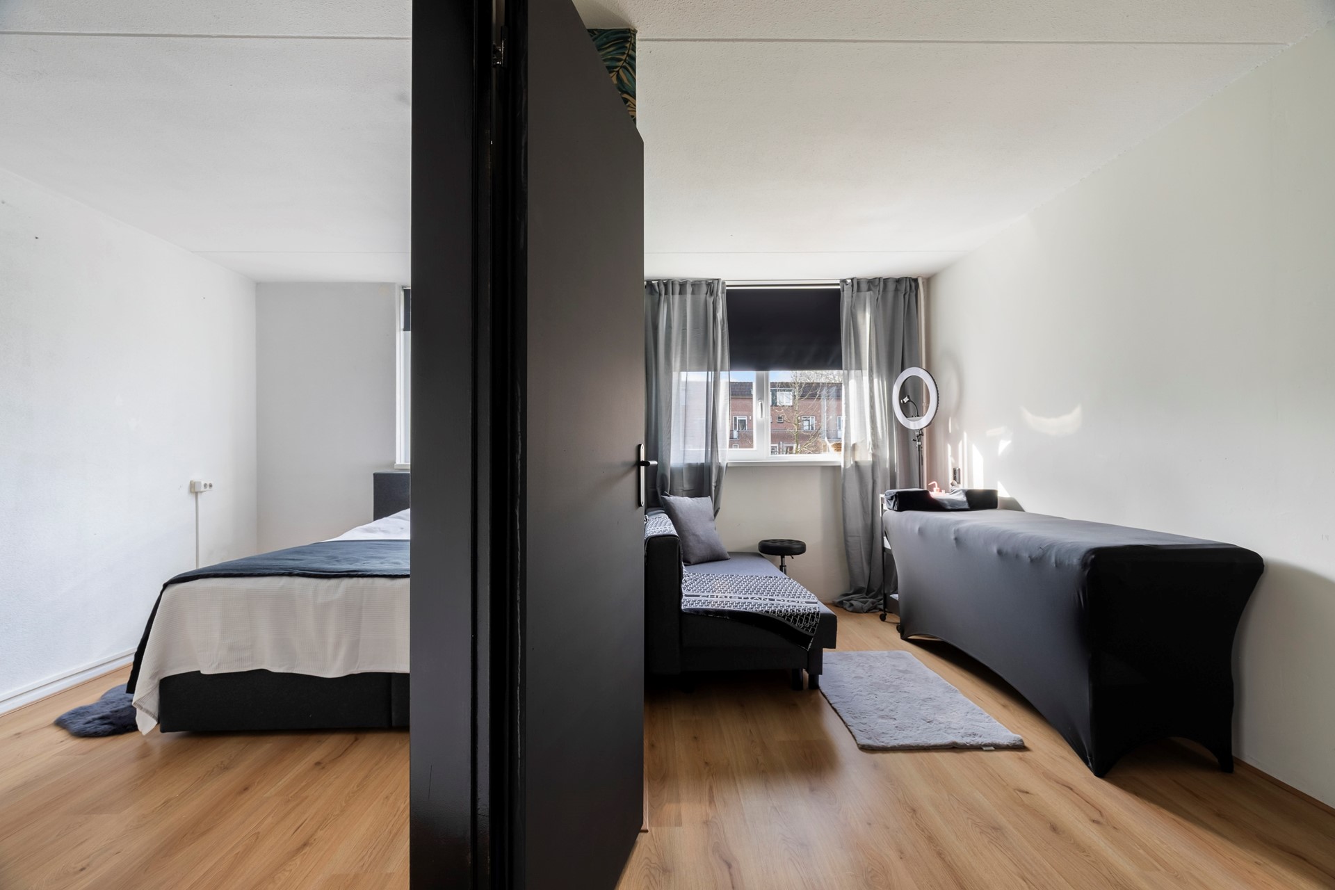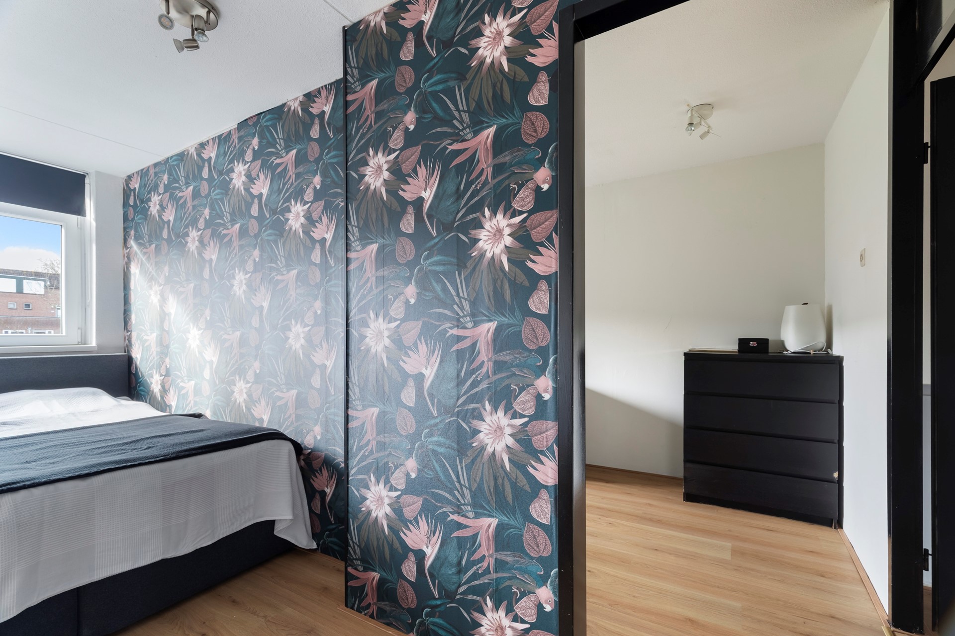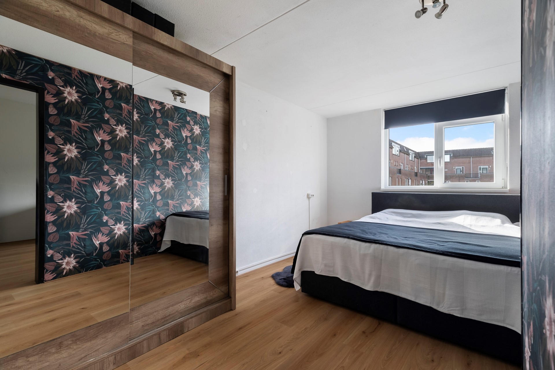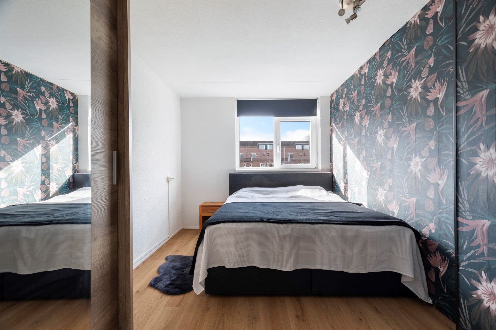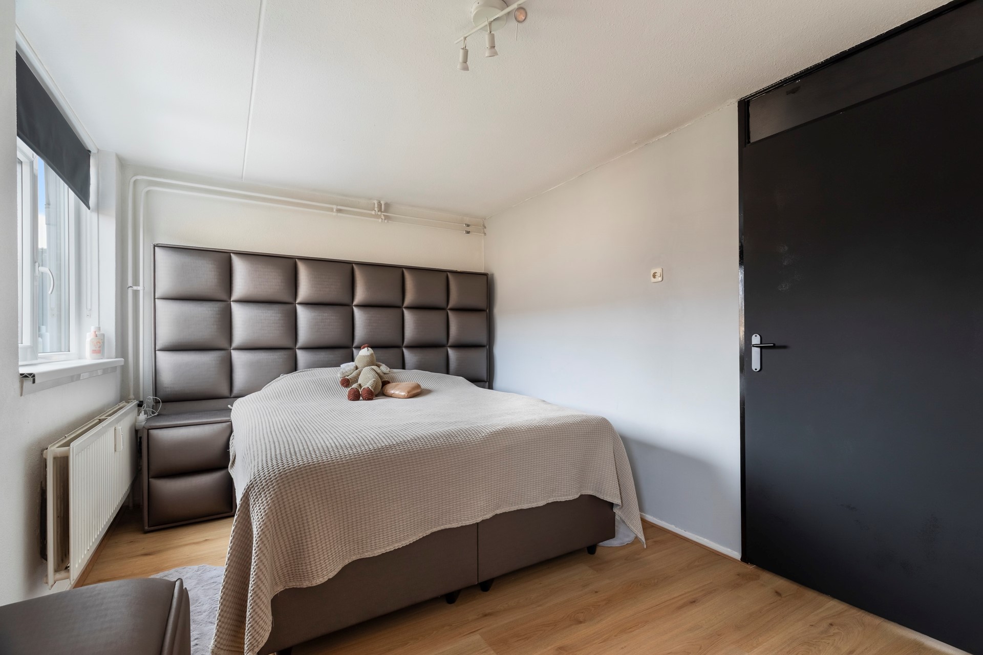 De slaapkamer aan de voorzijde is geschikt als hoofdslaapkamer of ruime werk-/logeerkamer.