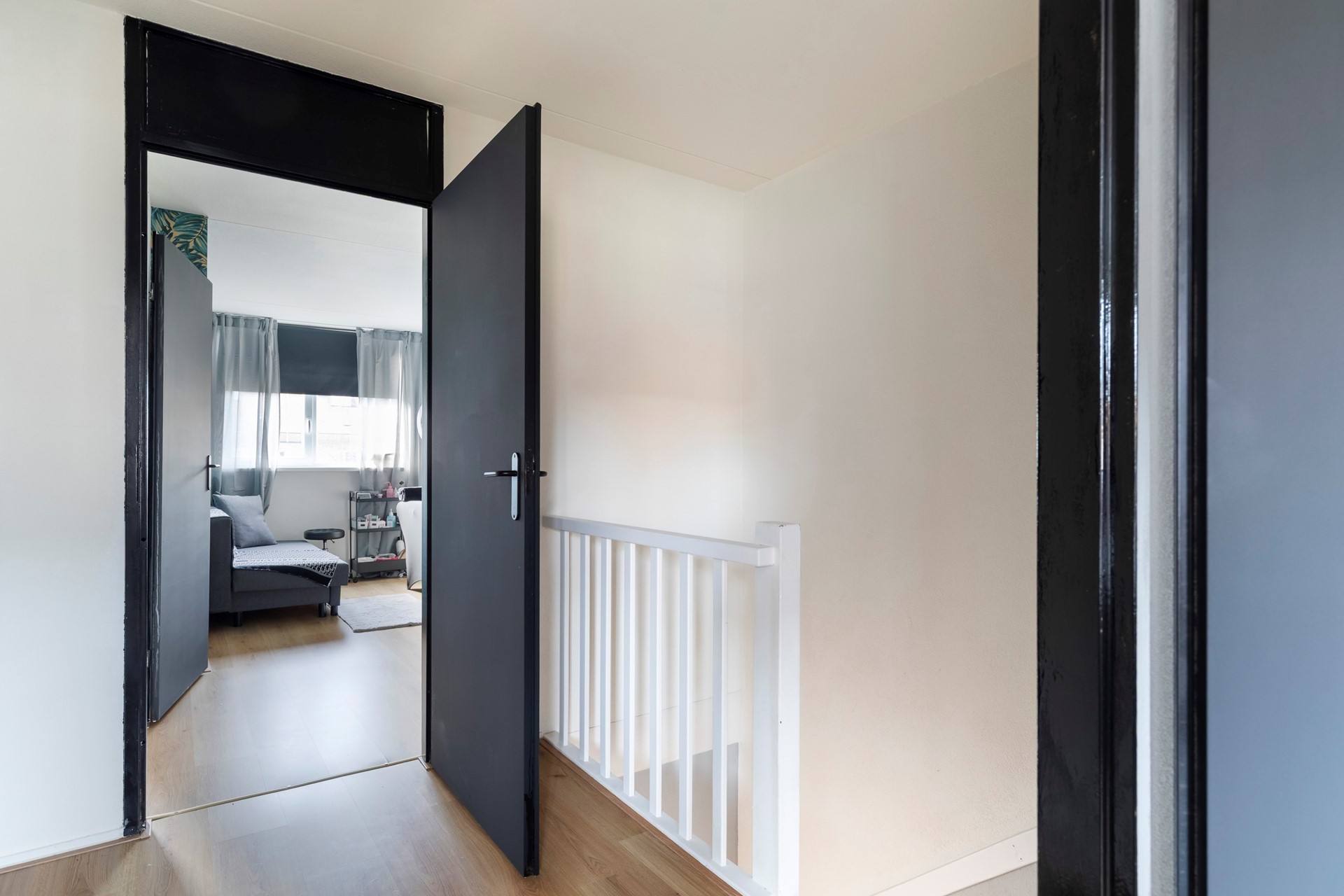 De eerste verdieping is volledig voorzien van laminaat en biedt toegang tot drie slaapkamers en de badkamer.