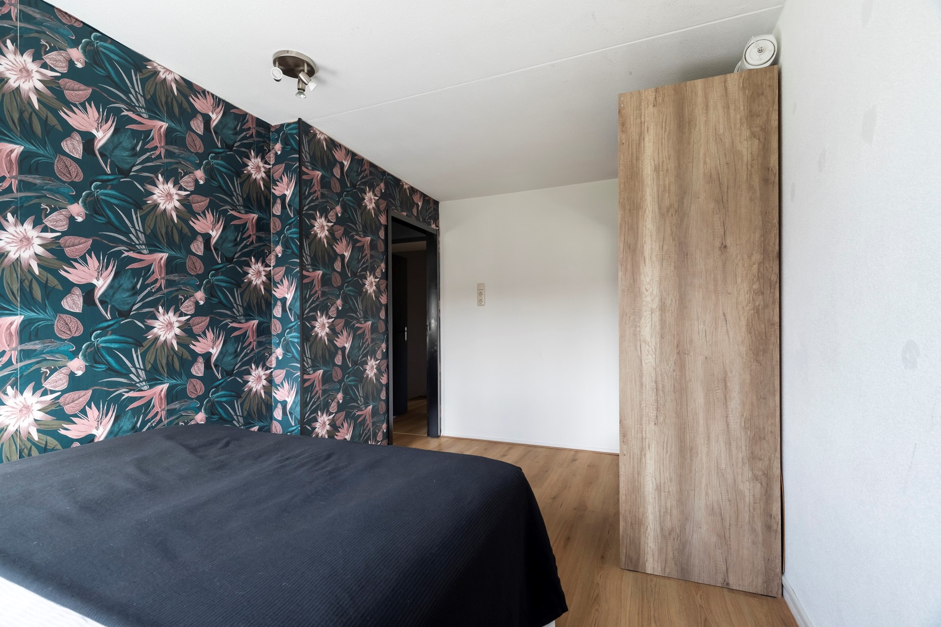 Een fijne slaapkamer aan de achterzijde van de woning, ideaal als kinderkamer of thuiskantoor.