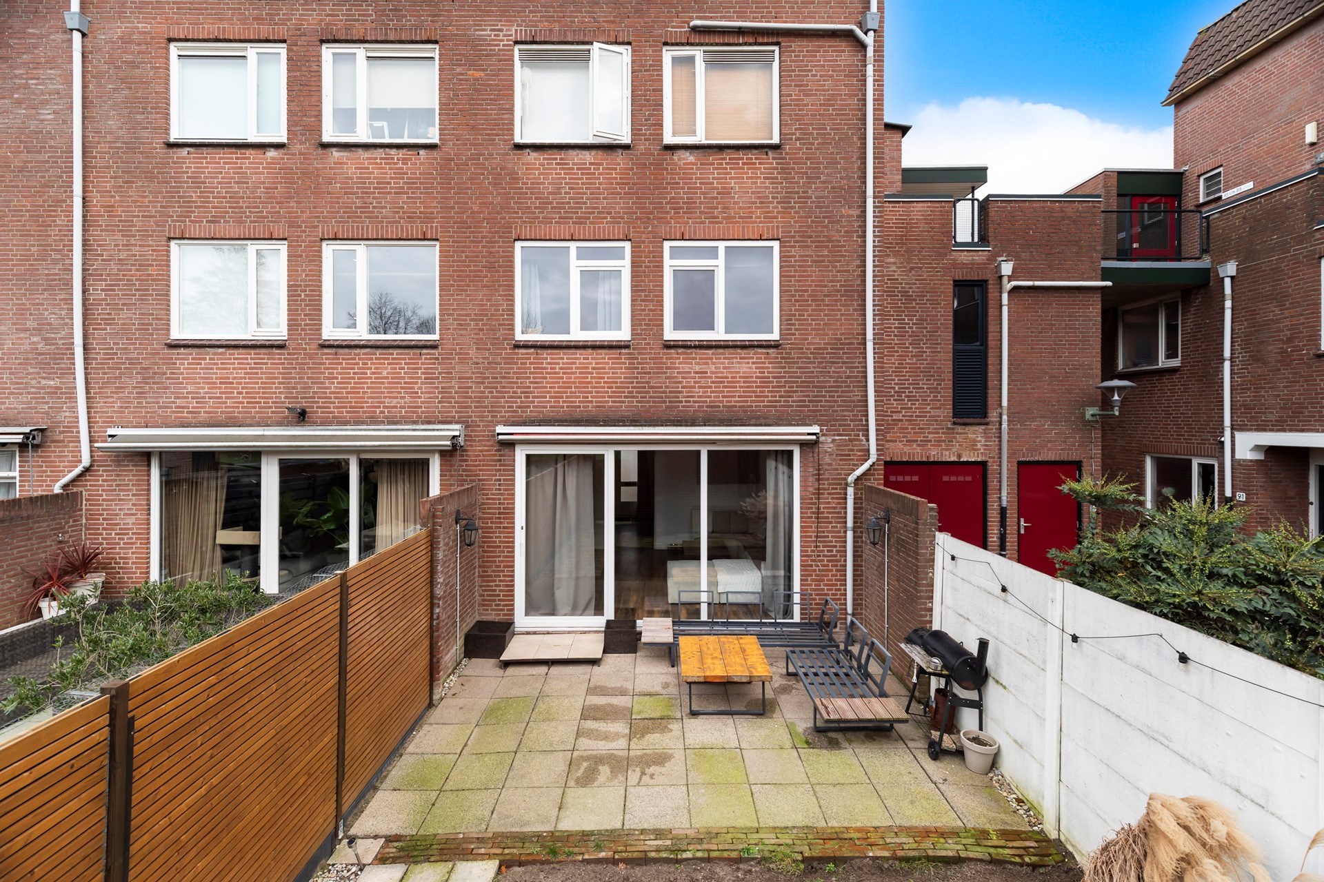 De schuifdeur naar de tuin is in 2018 vernieuwd en zorgt voor veel lichtinval en een prettige verbinding tussen binnen en buiten.