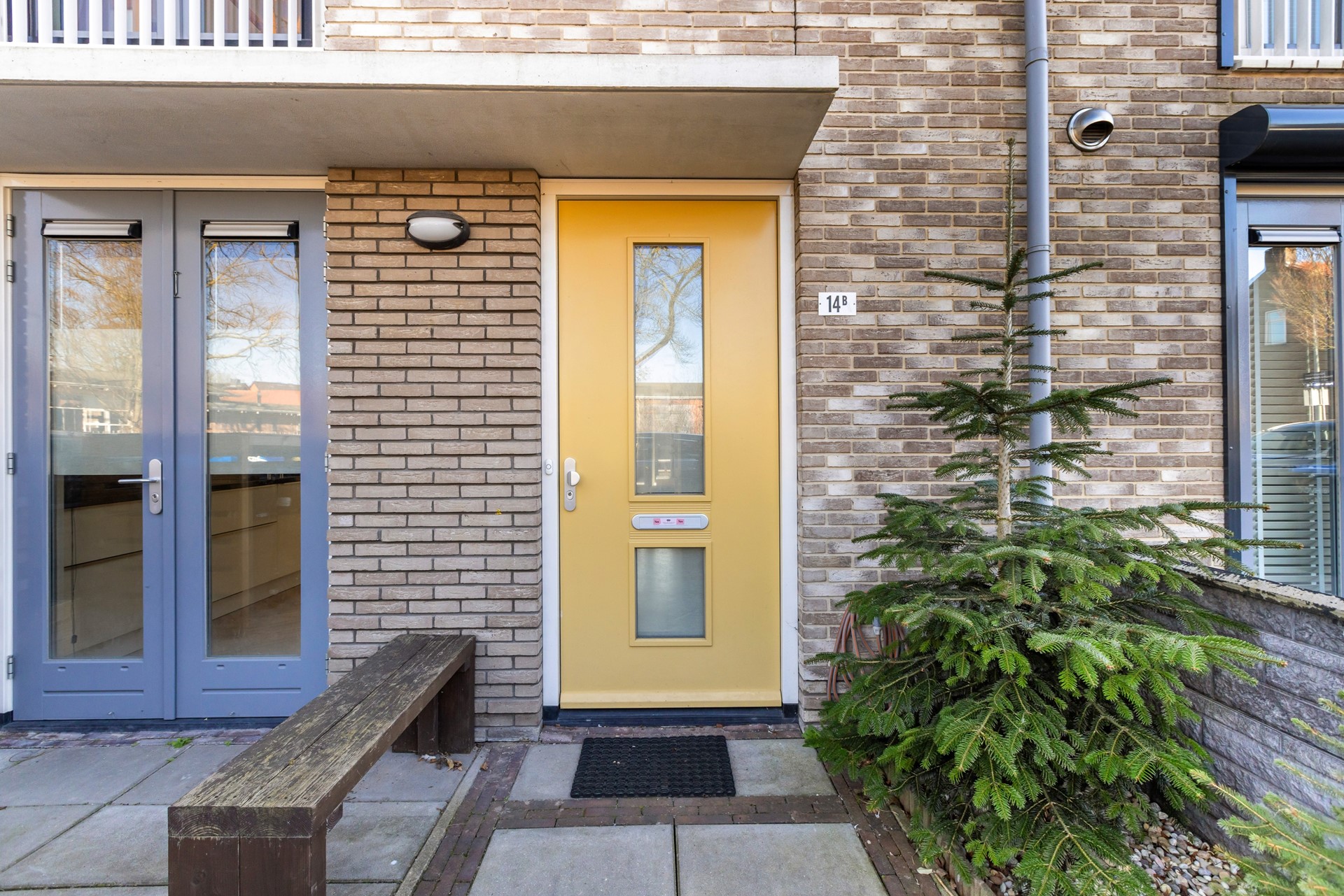 Via de openslaande deuren is er toegang tot de voortuin op het noordwesten.