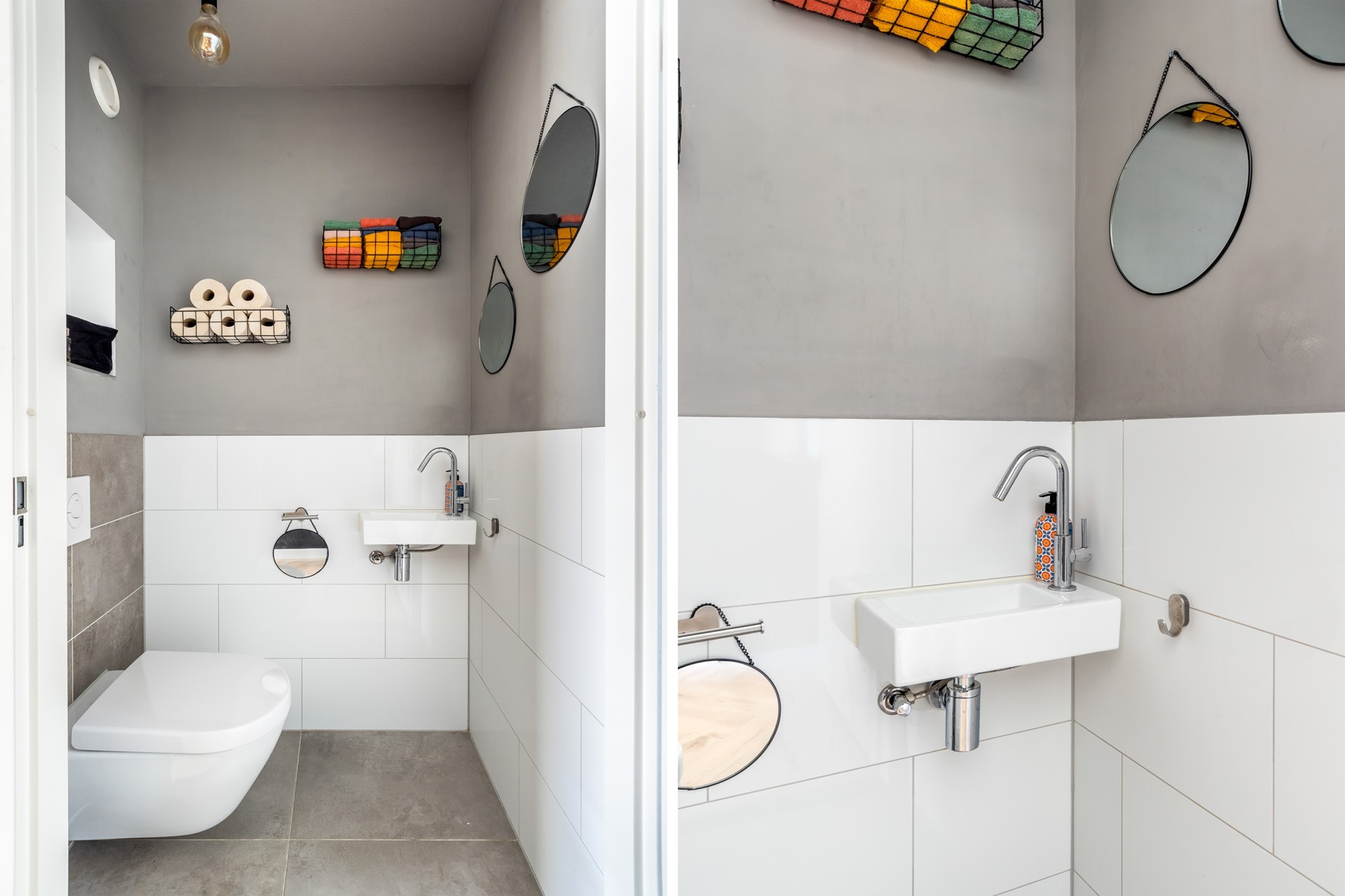 De moderne badkamer is uitgevoerd in antraciet en wit en voorzien van: