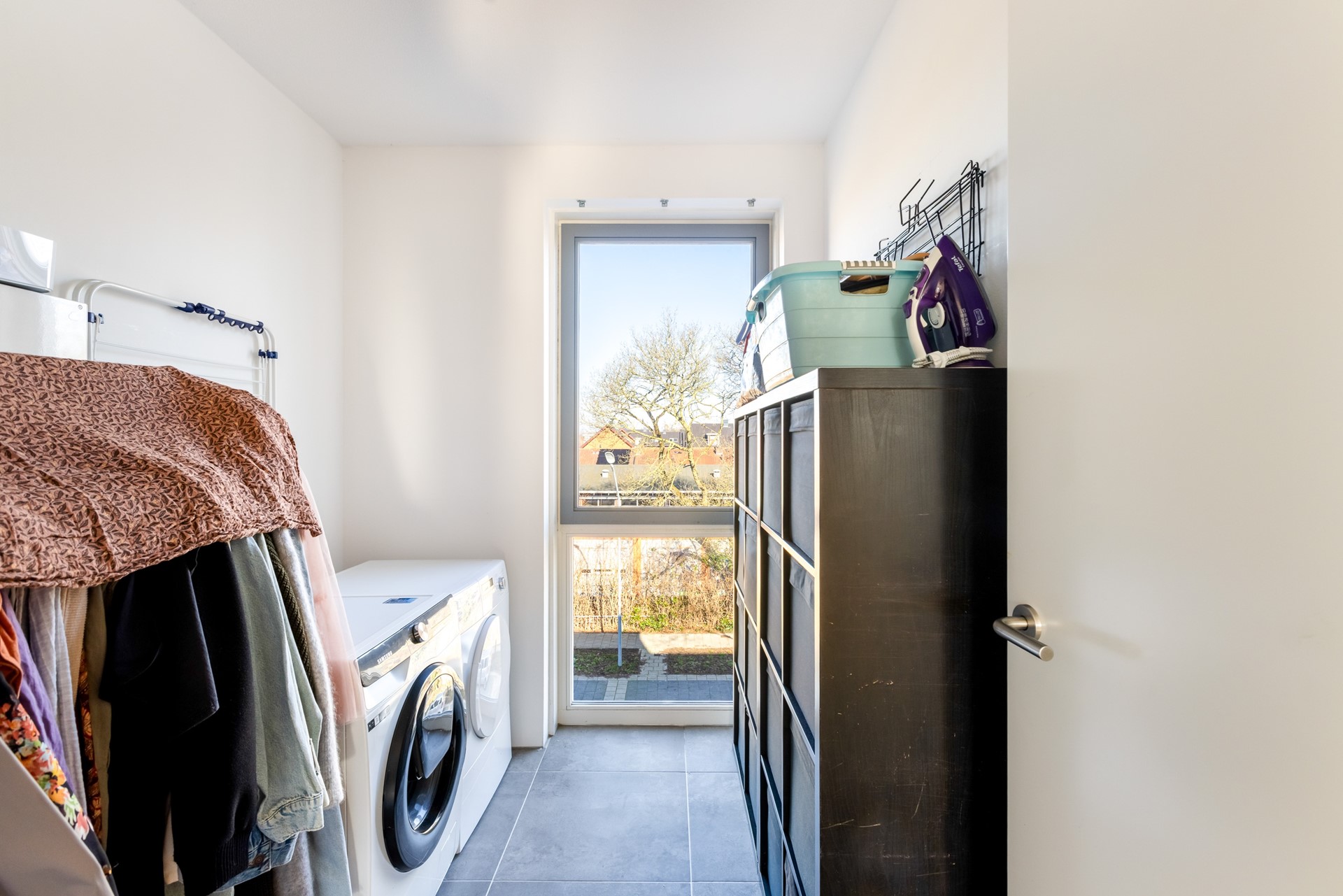 Voorzien van aansluitingen voor wasmachine en droger, mechanische ventilatie en de omvormers voor de zonnepanelen. Deze ruimte kan ook worden ingericht als extra slaapkamer of tweede badkamer.