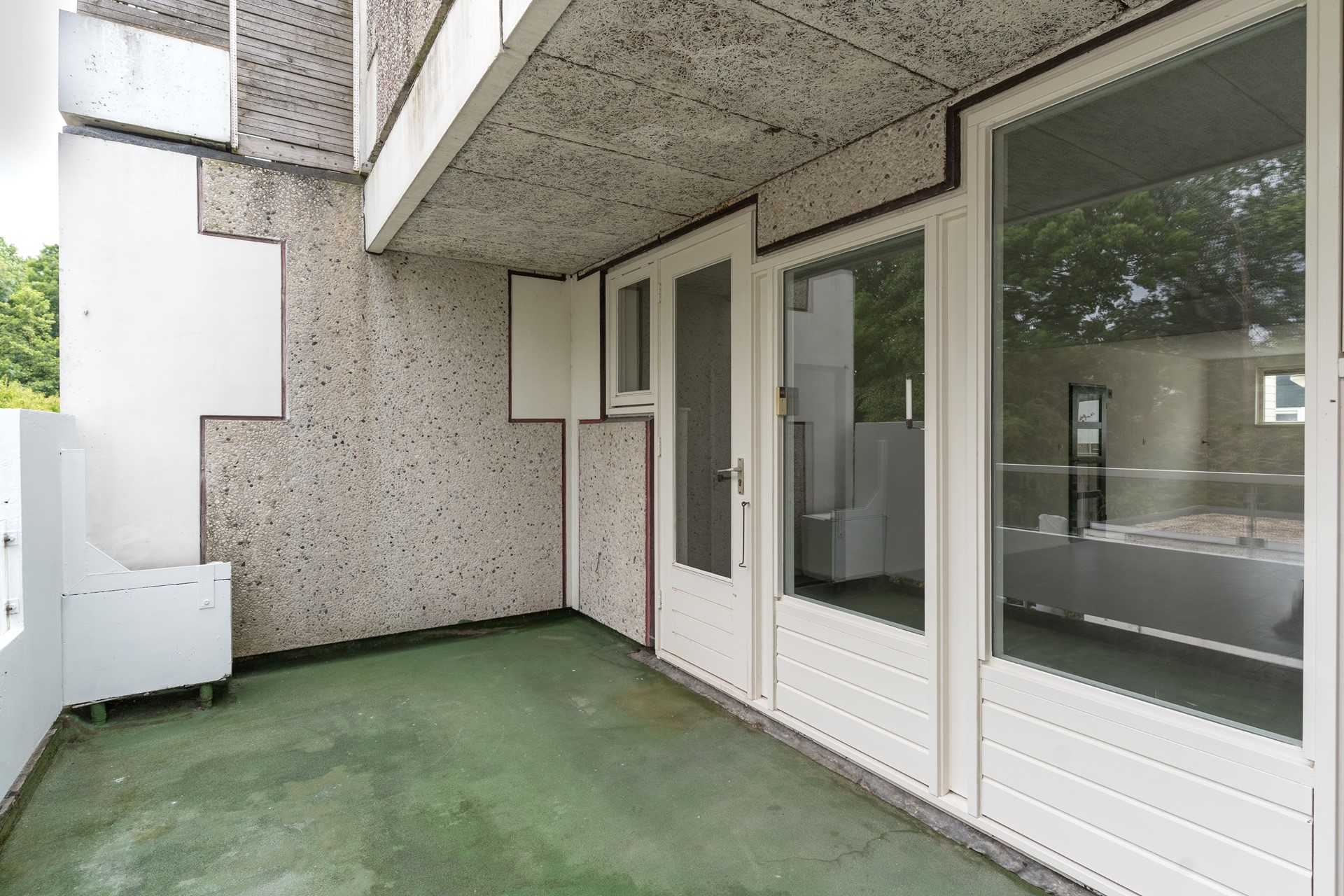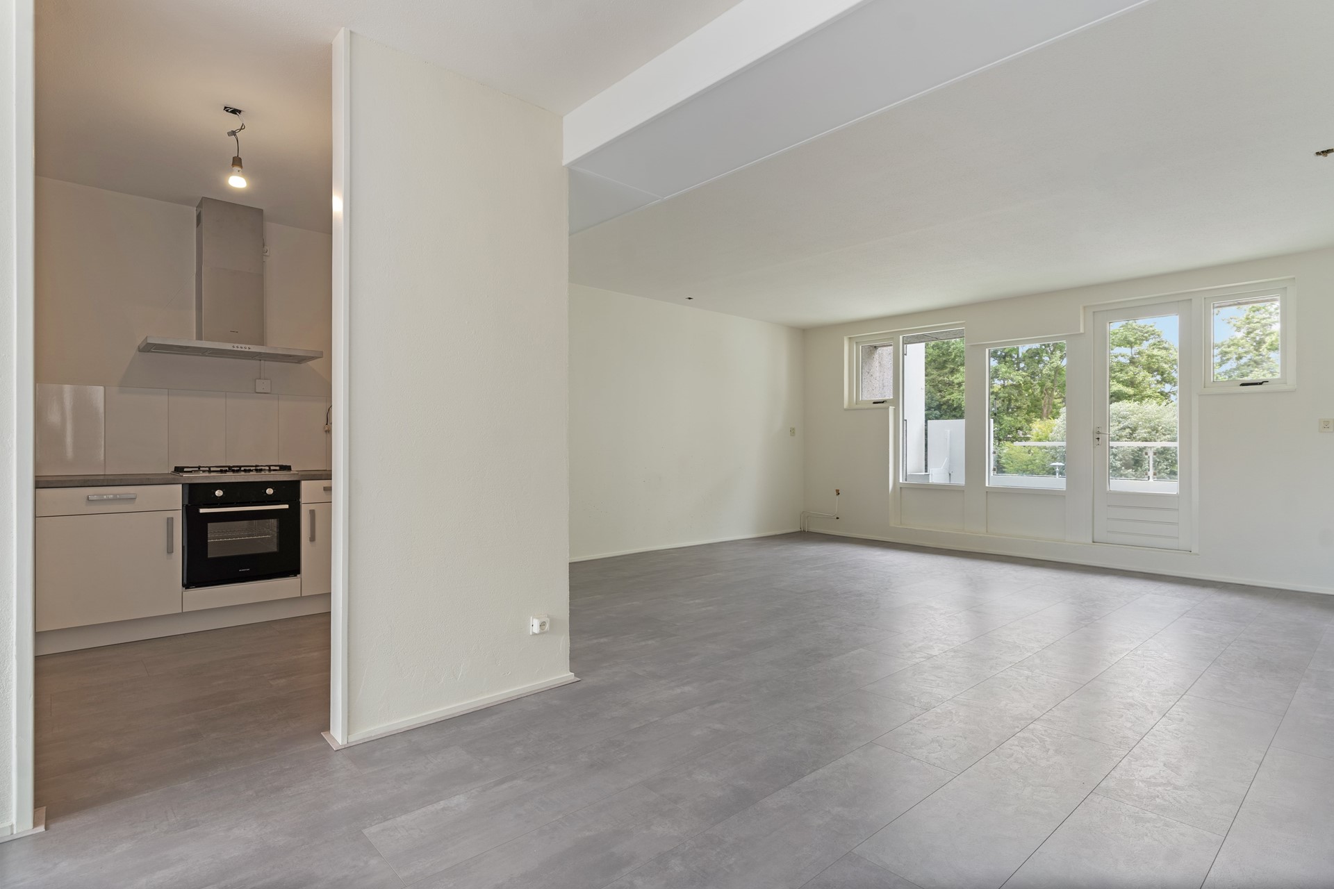 Vanuit de woonkamer is er directe toegang tot het ruime balkon, een heerlijke plek om buiten te zitten en te genieten van de rustige omgeving.