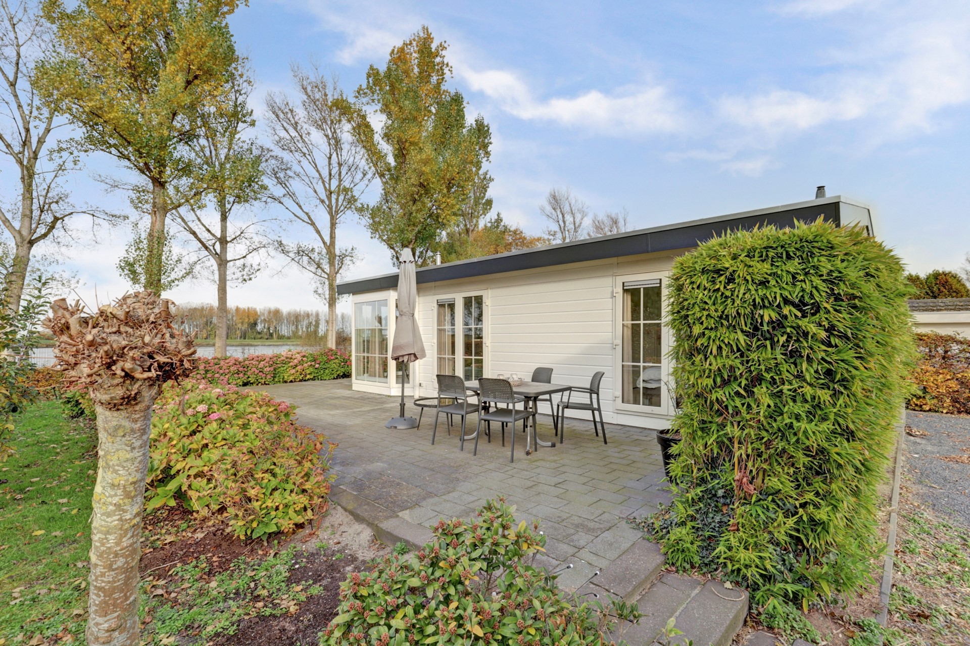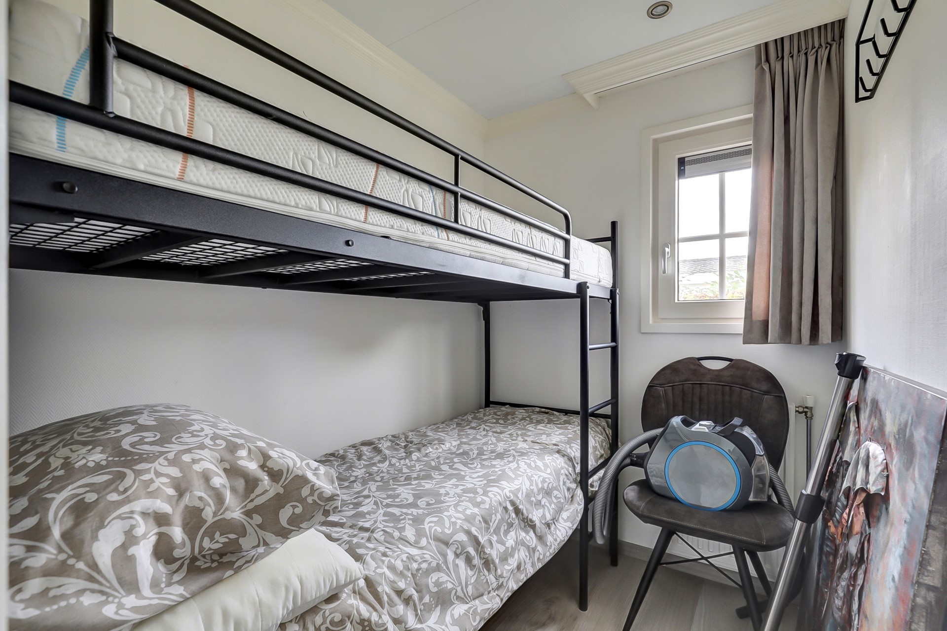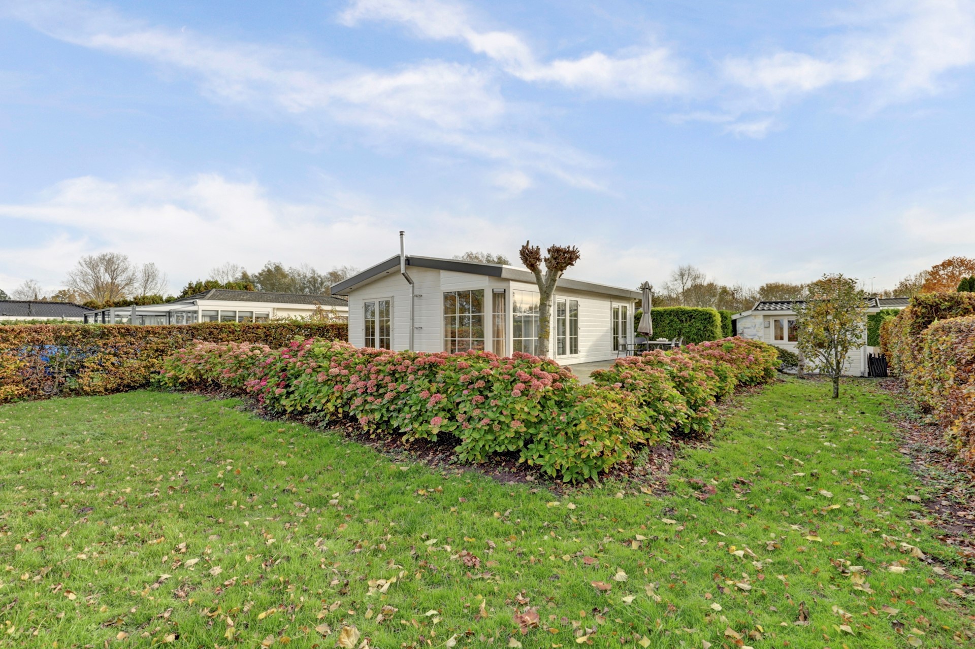 en openslaande deuren naar de tuin. De badkamer is groot en luxe uitgevoerd, met onder meer een inloopdouche en schuifwandkast, waar plaats is voor wasmachine en droger. Alle inboedel blijft gewoon achter. Wanneer u dit chalet aanschaft, dan is alles gelijk helemaal compleet - met interieur en al - en kunt u zonder wacht- en levertijden genieten!