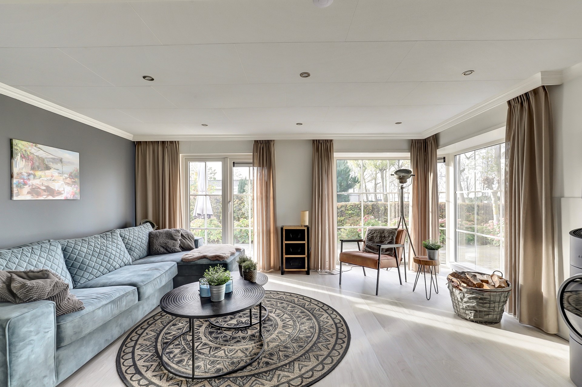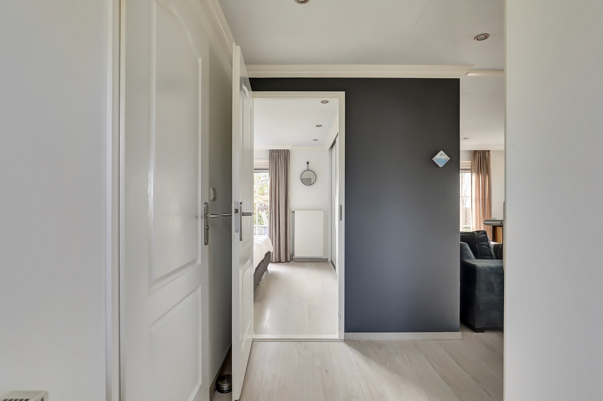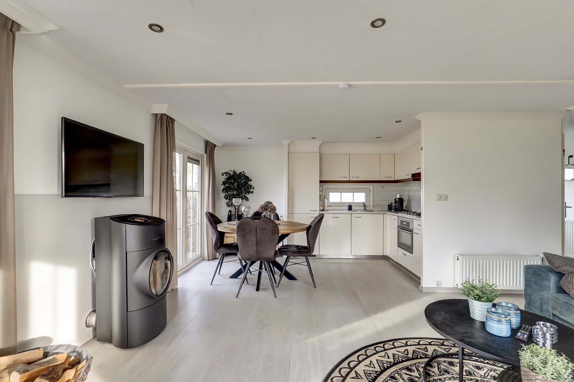 en openslaande deuren naar de tuin. De badkamer is groot en luxe uitgevoerd, met onder meer een inloopdouche en schuifwandkast, waar plaats is voor wasmachine en droger. Alle inboedel blijft gewoon achter. Wanneer u dit chalet aanschaft, dan is alles gelijk helemaal compleet - met interieur en al - en kunt u zonder wacht- en levertijden genieten!