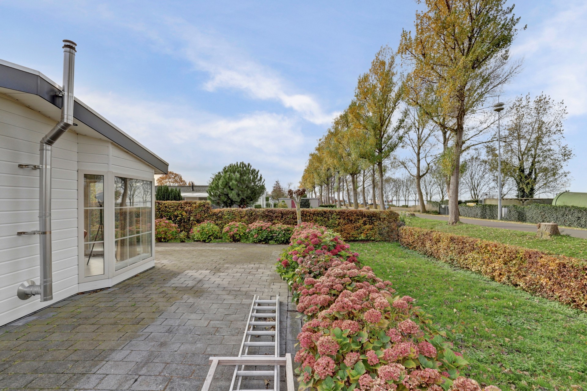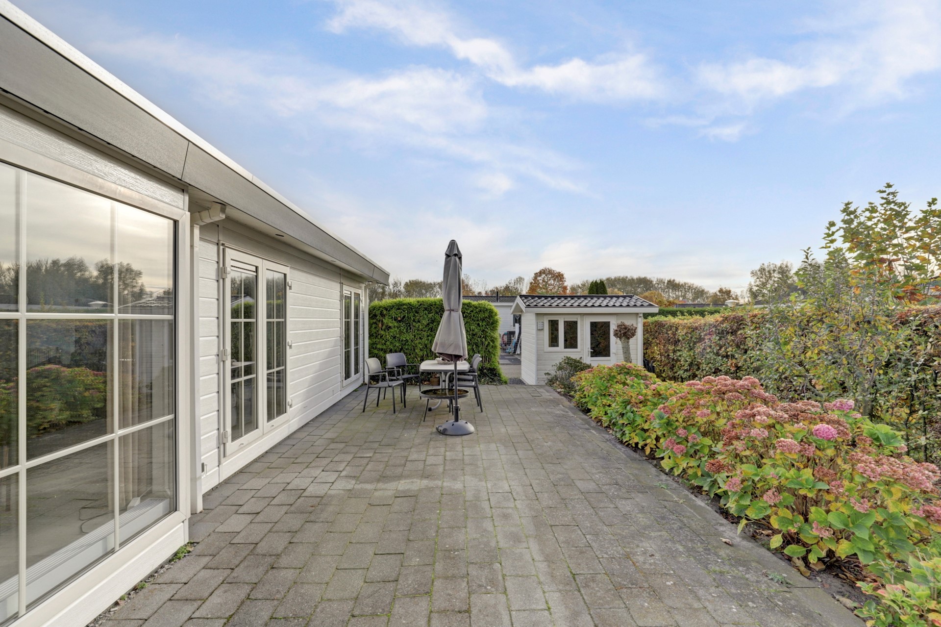 De op het zuiden gerichte tuin heeft een royale berging en een groot terras, waar u altijd een plekje in de zon of schaduw vindt. Het terras is afgebakend met een rand van hortensia's, wat in de zomer voor een mooie bloemenzee zorgt.