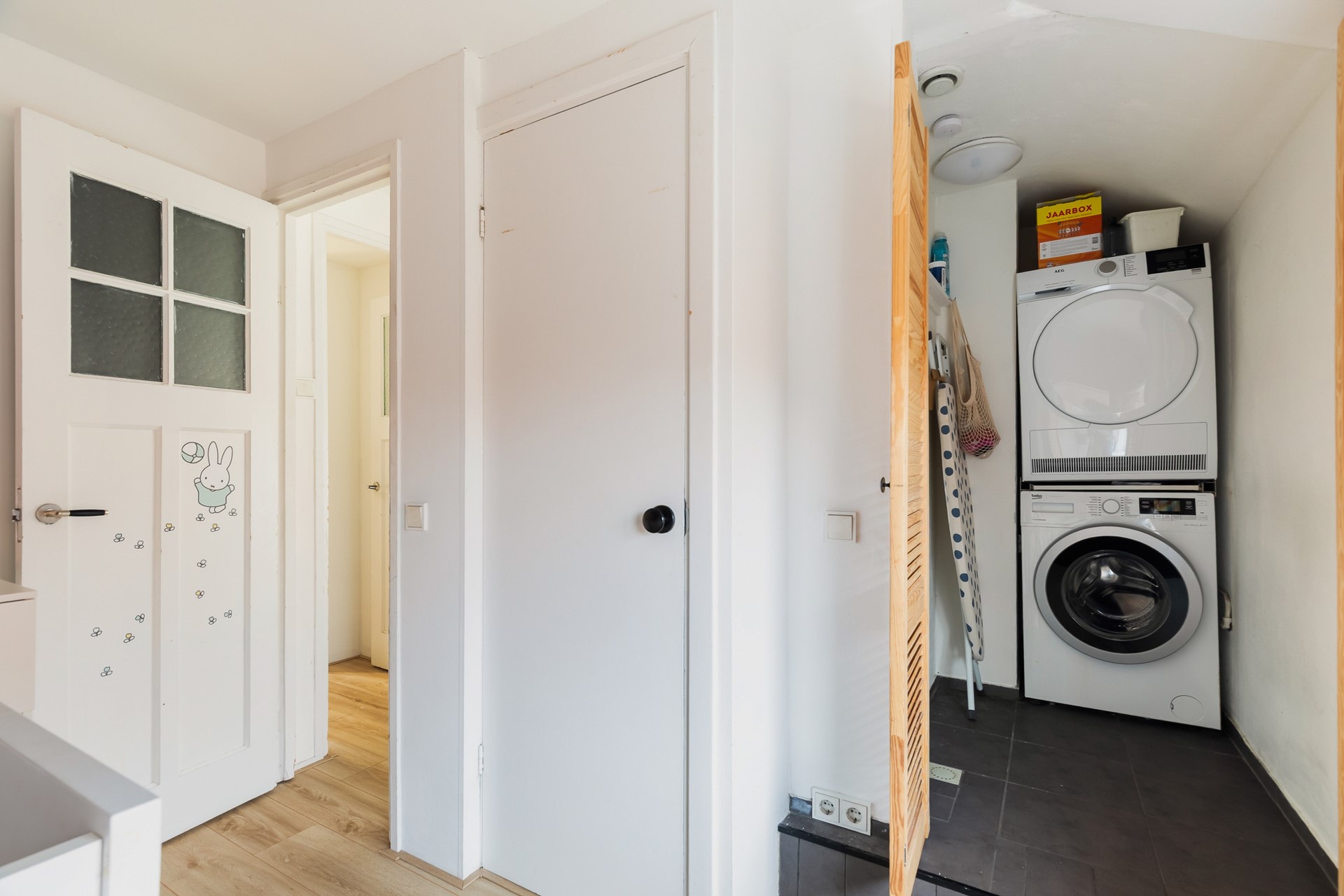 Gelegen aan de achterzijde met toegang tot een aparte wasruimte voor wasmachine en droger.