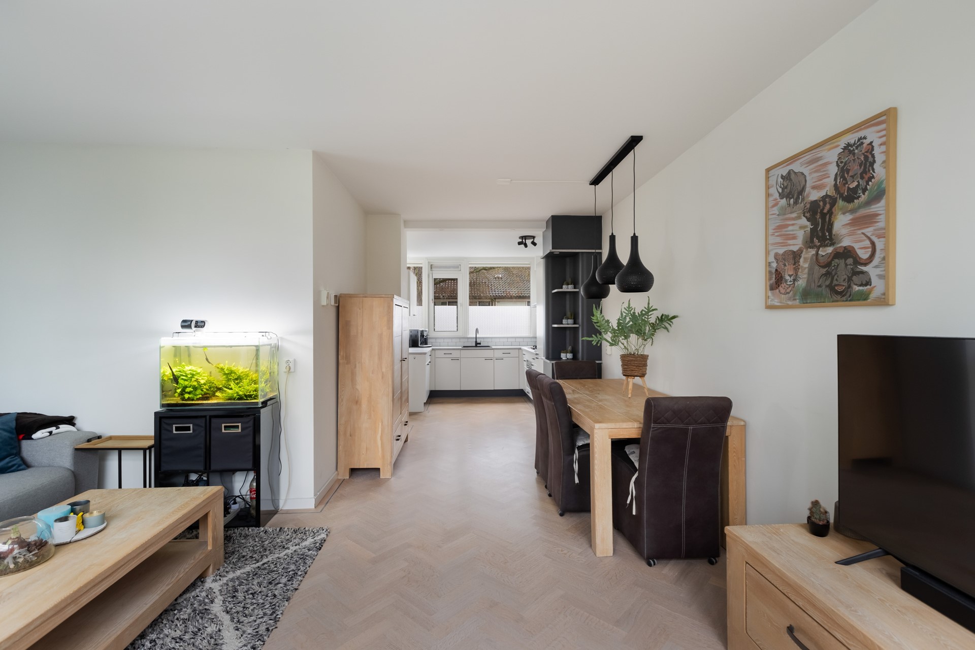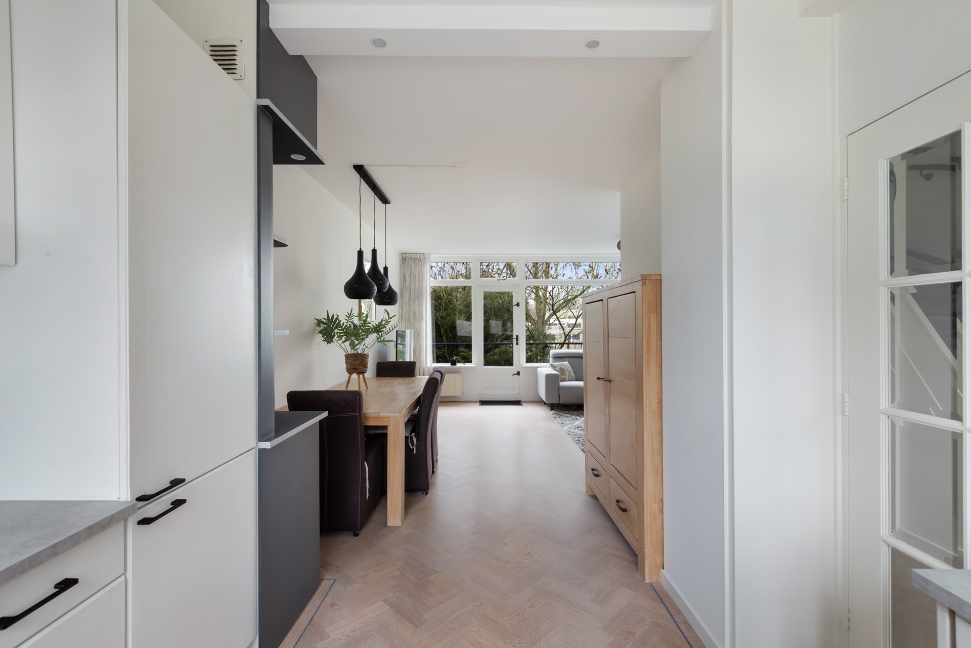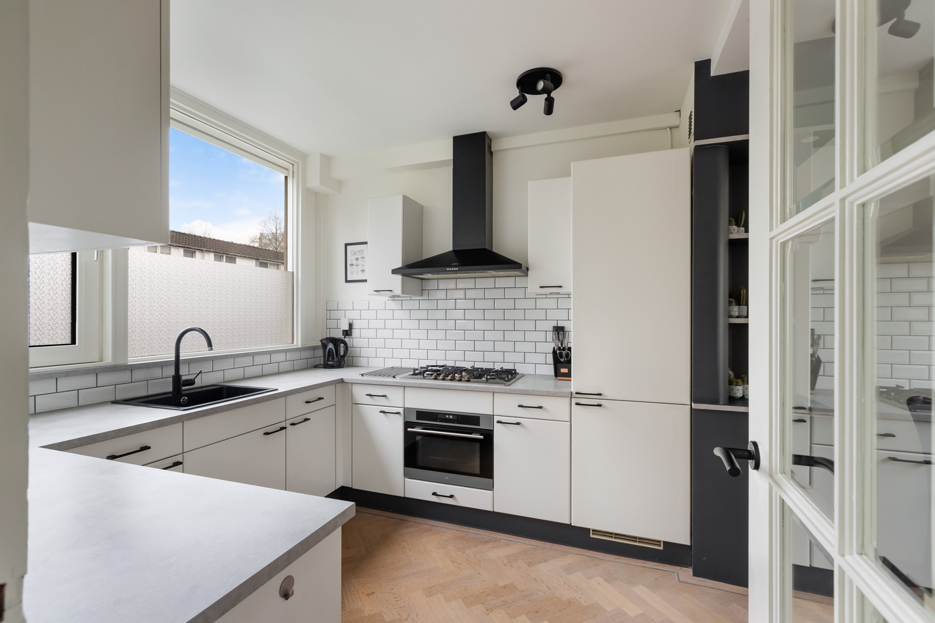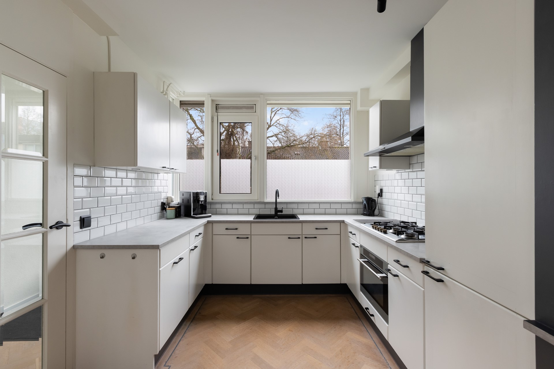 De open keuken heeft een oppervlakte van circa 8 m² en is opgesteld in een praktische U-vorm. De keuken is voorzien van een vijfpits gasfornuis, afzuigkap, elektrische oven, koelkast en een aparte vriezer. Er is reeds een extra groep aangelegd voor een eventuele overstap naar inductiekoken. Het plafond van de keuken is deels afgewerkt met inbouwspots.