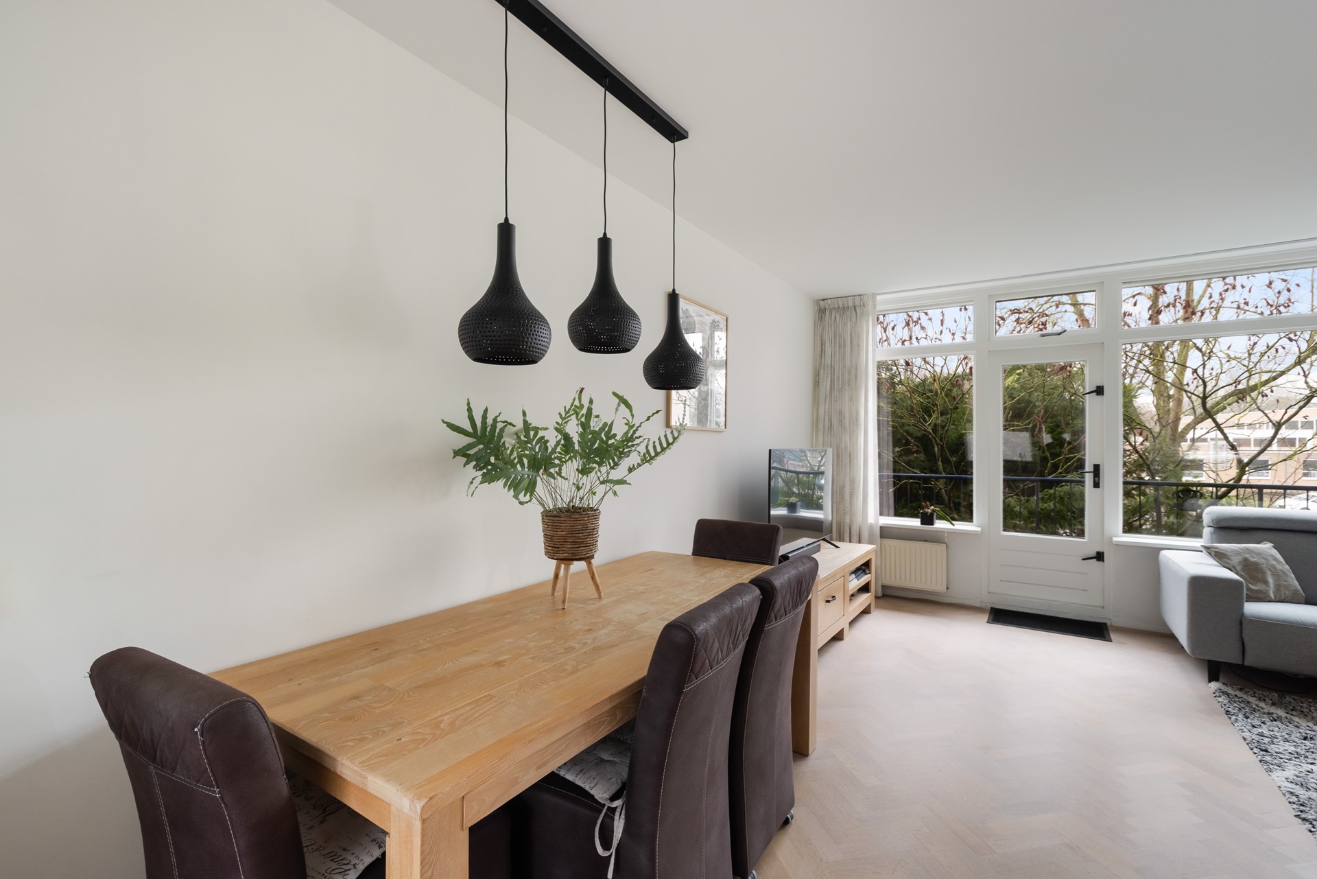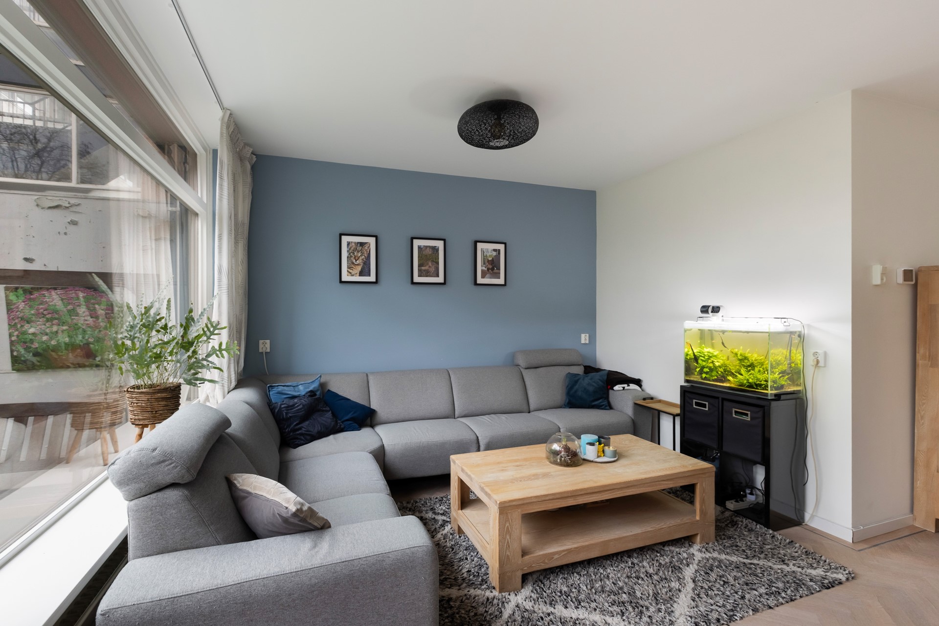 De woonkamer heeft een oppervlakte van circa 25 m² en biedt toegang tot het balkon van ongeveer 8 m². De woonkamer is afgewerkt met een fraaie houten parketvloer en strak gestuukte wanden. Het balkon is gelegen op het westen.