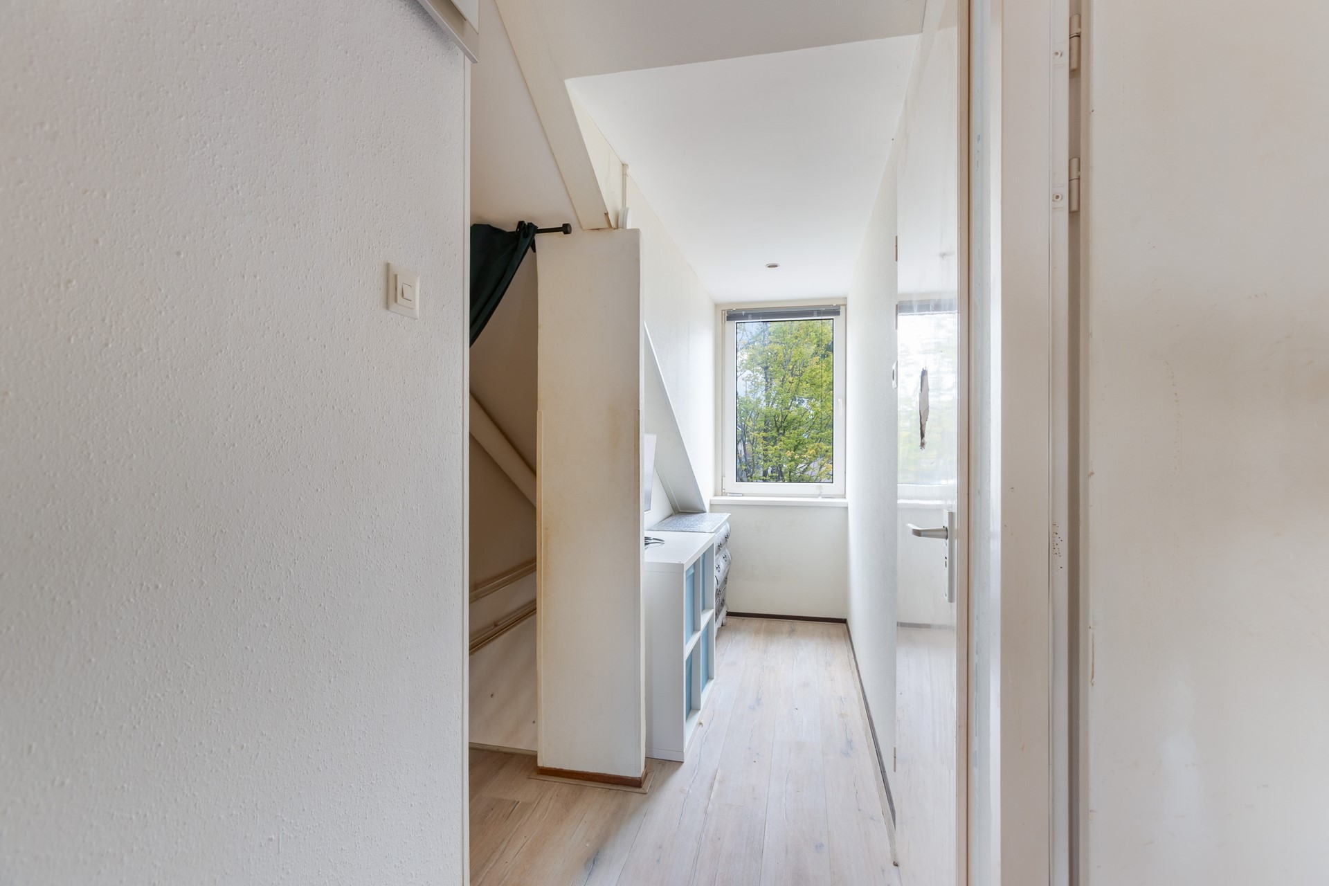 Via de trap kom je op de overloop, die toegang geeft tot twee slaapkamers, badkamer en inbouwkast met daarin de Cv Ketel Remeha Avanta uit 2015. Alle slaapkamers zijn voorzien van laminaat en behang.