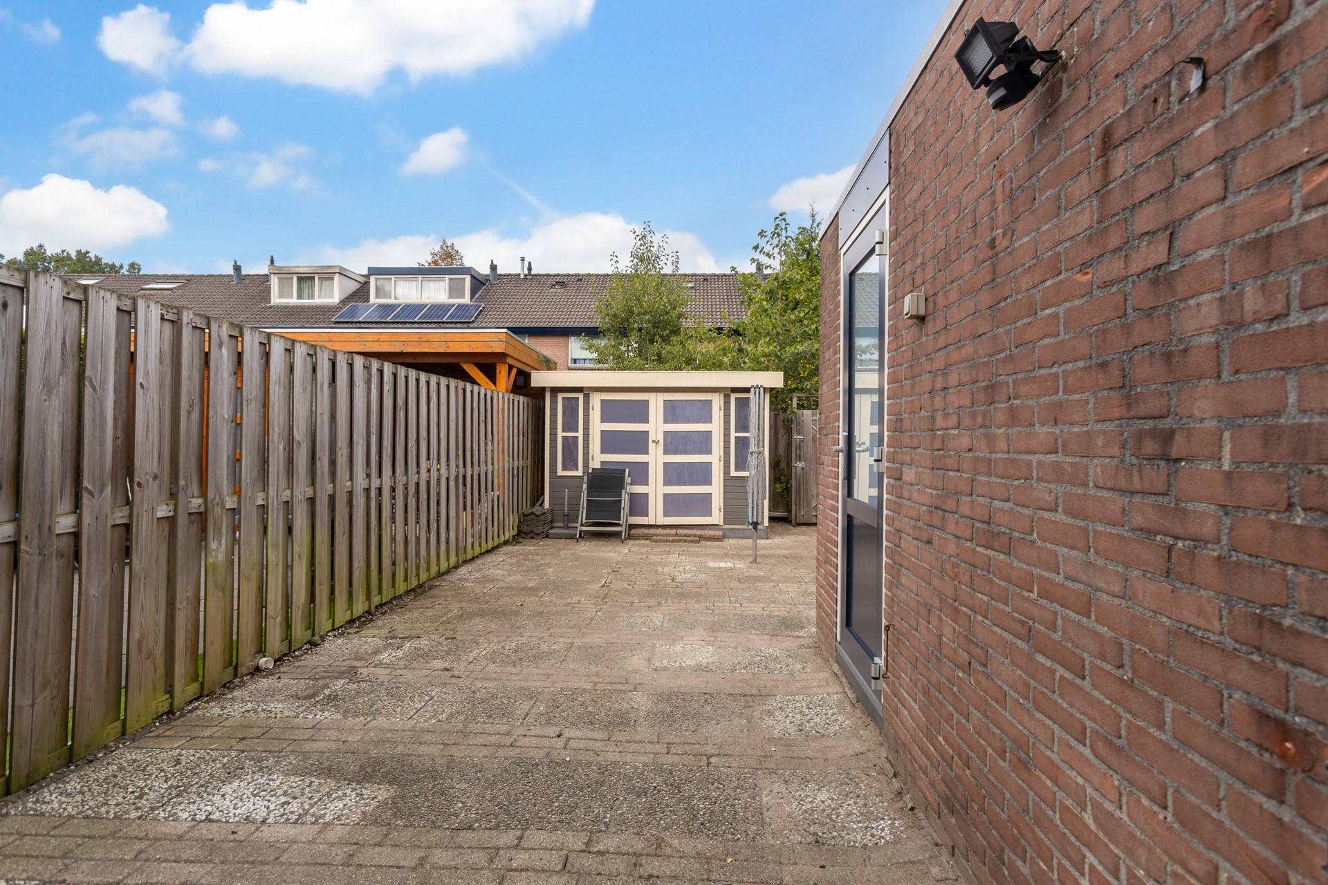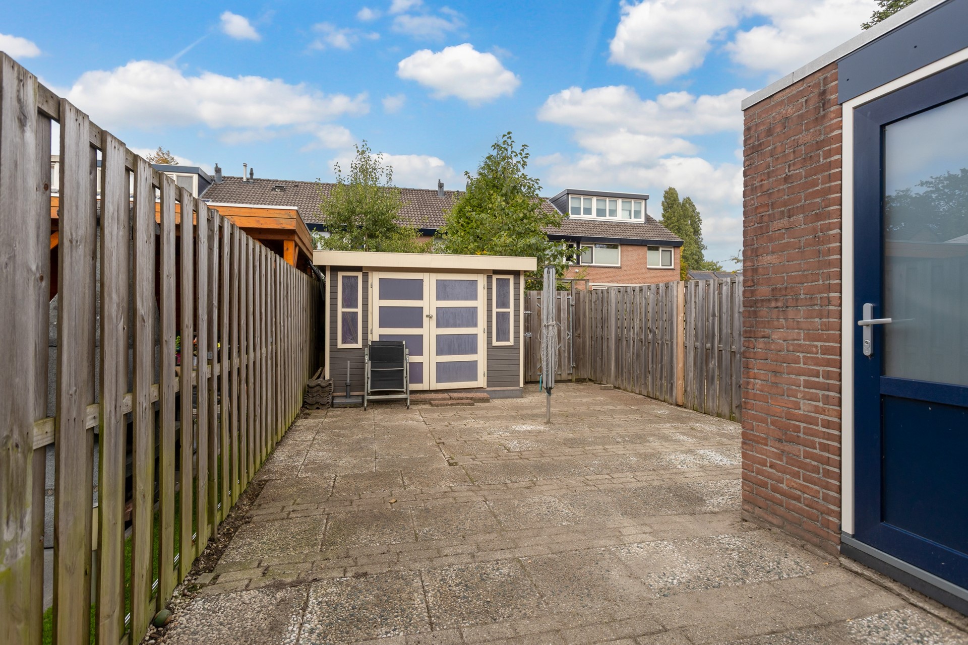 De achtertuin is gesitueerd op het westen en is onderhoudsvriendelijk en beschikt over een achterom. Direct achter de woning vind je een berging en helemaal achterin de tuin staat nog een tweede berging. Ideaal voor fietsen of extra spullen.