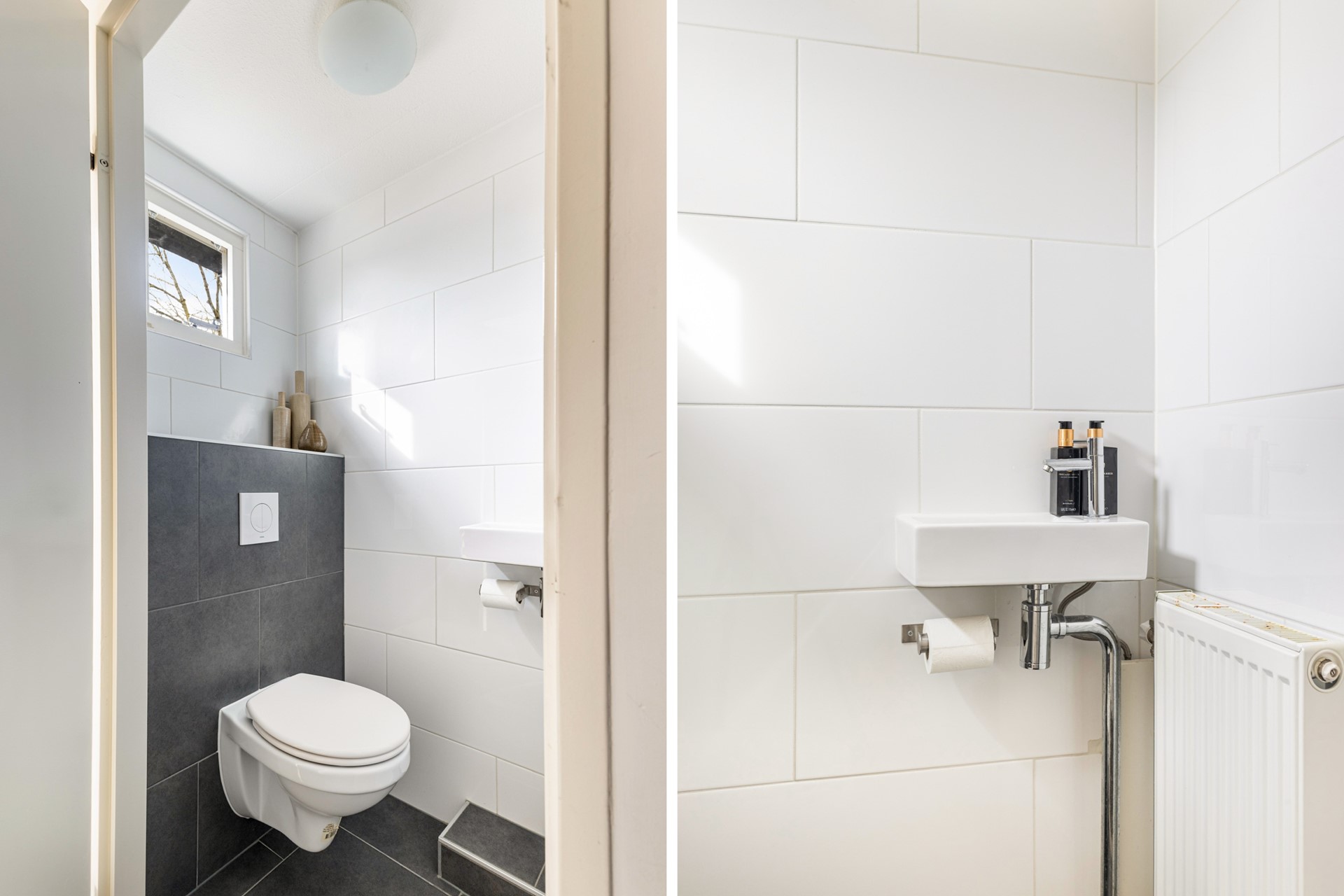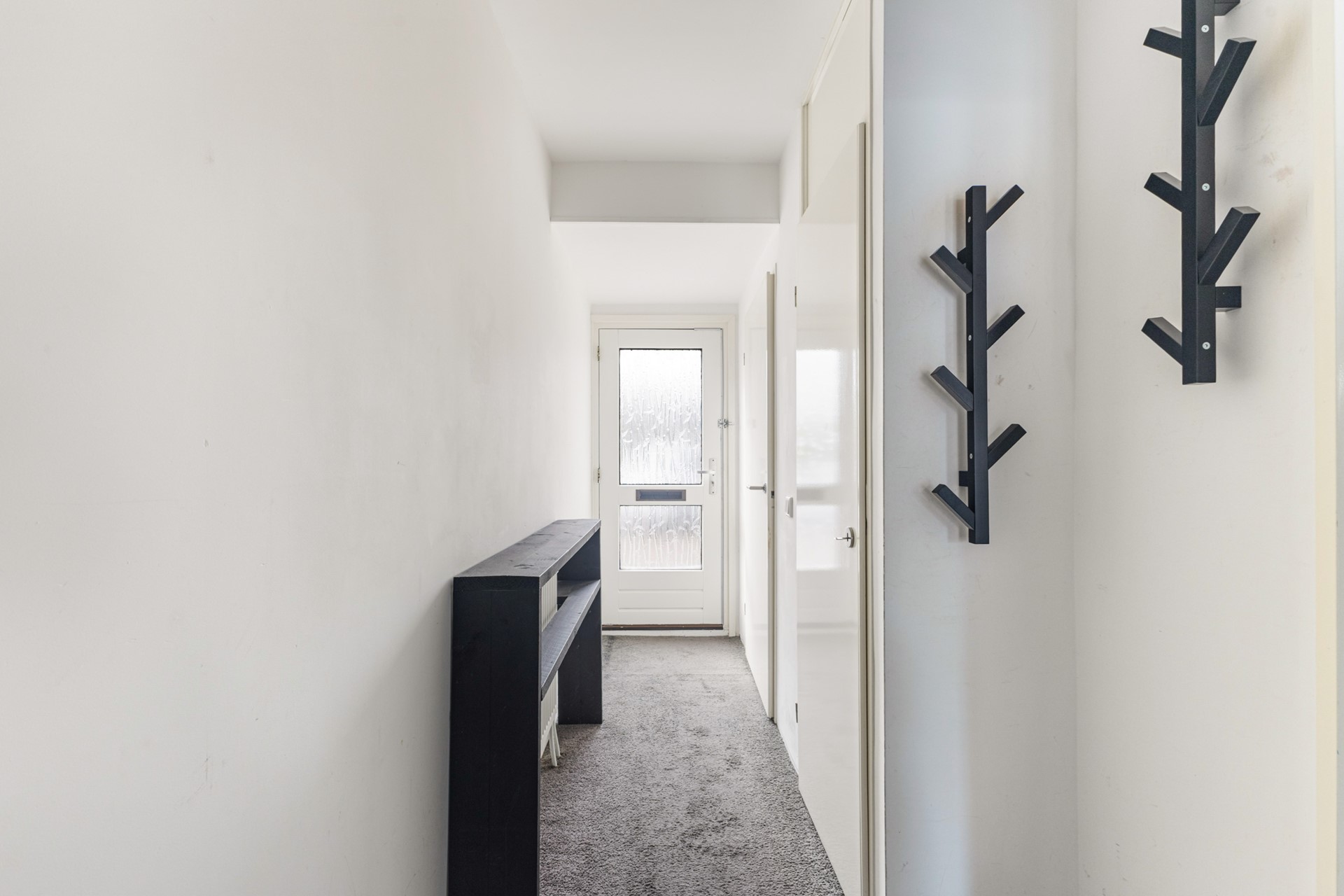 Via een ruime hal betreed je de woning. Hier bevinden zich de meterkast (8 groepen + glasvezelinternet), een separaat toilet, de toegang tot de woonkamer en de trapopgang naar de eerste verdieping.