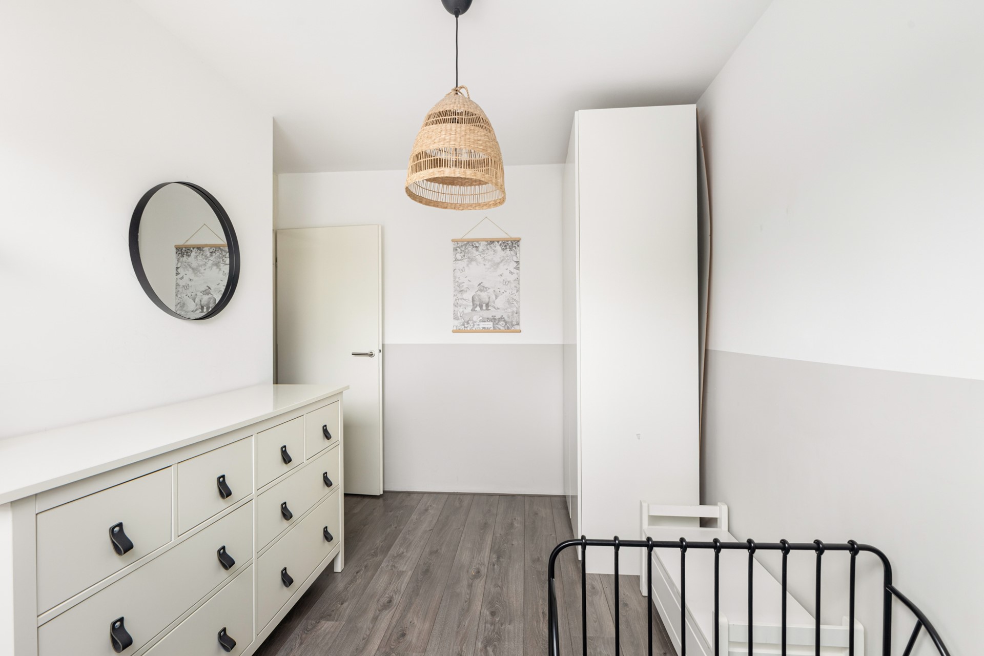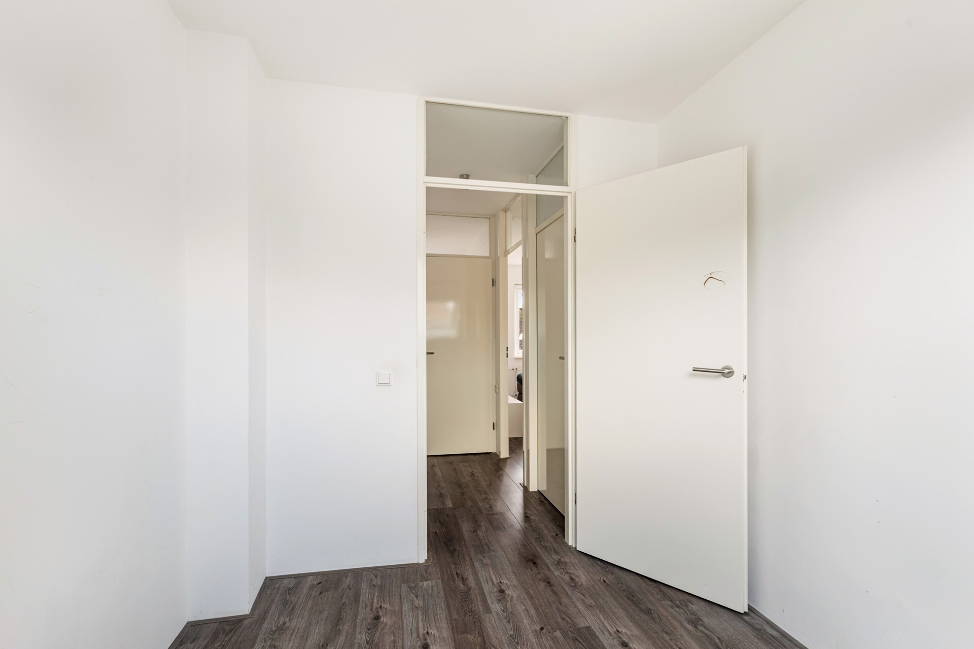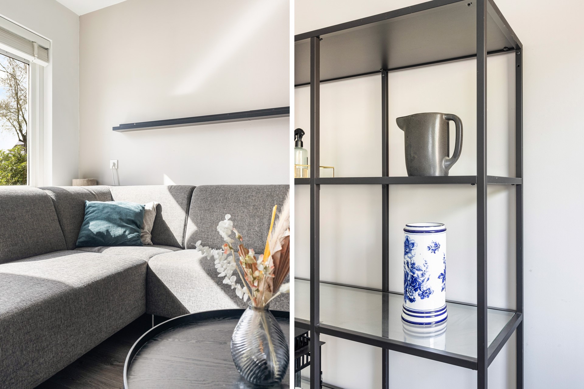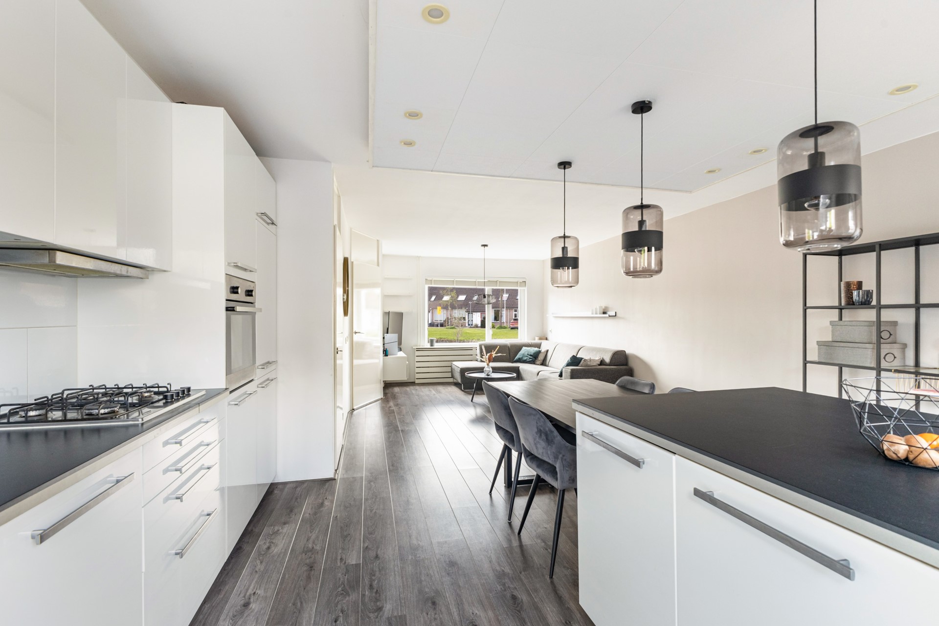 De ruime woonkamer met open keuken is circa 9 meter diep. De vloer is voorzien van een nette laminaatvloer en de wanden zijn strak gestuukt en gesausd. Daarnaast beschikt de woonkamer over een praktische trapkast, ideaal voor extra opbergruimte.